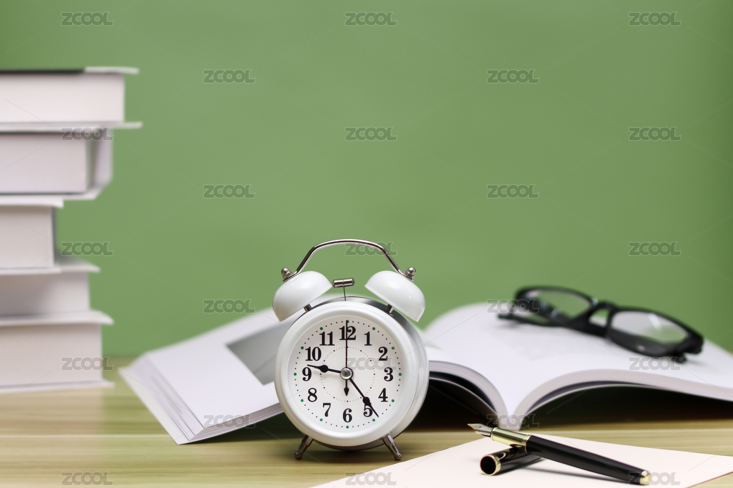 课桌上的书本和闹钟,努力学习