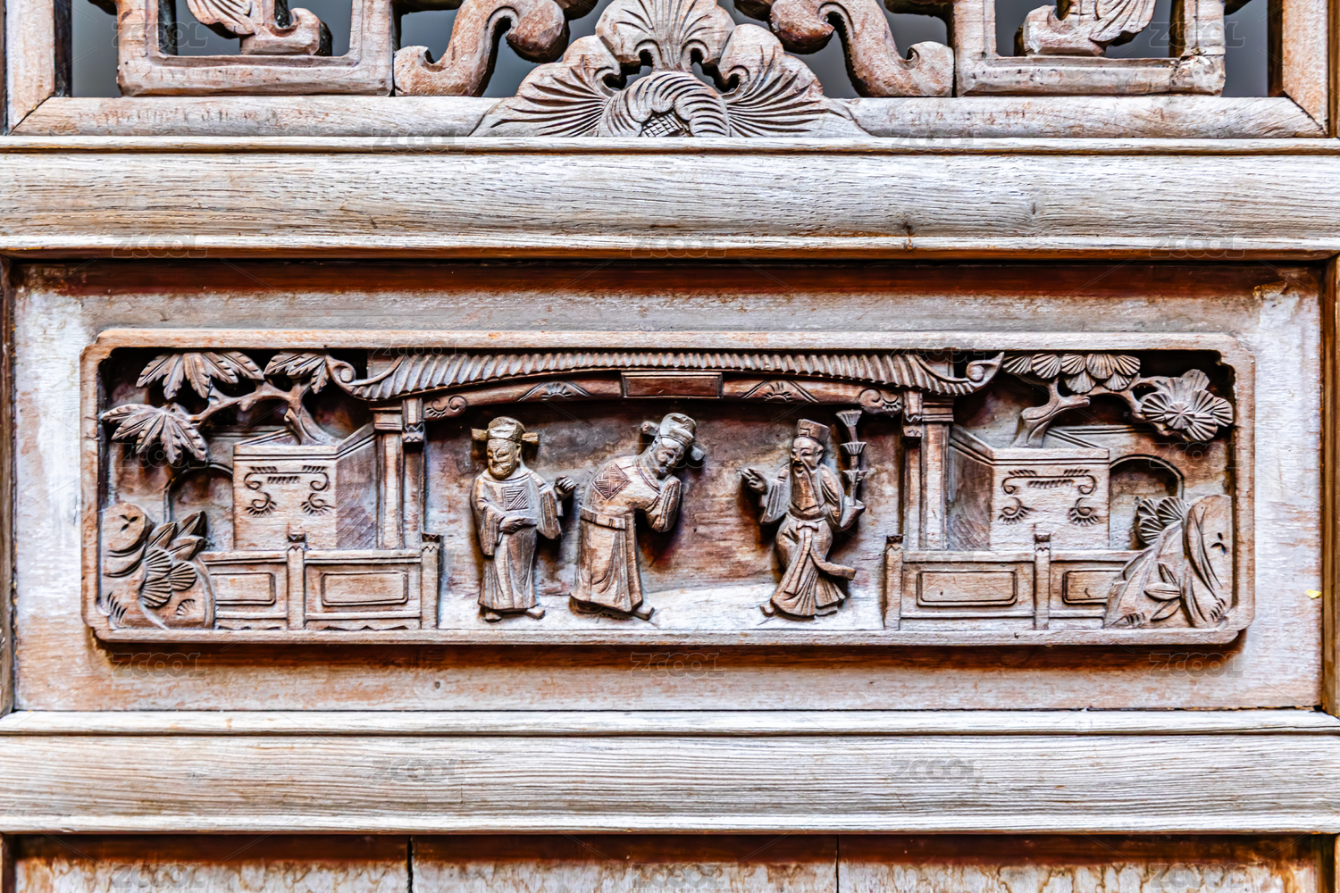 中国浙江丽水松阳县黄家大院传统木雕艺术百寿图