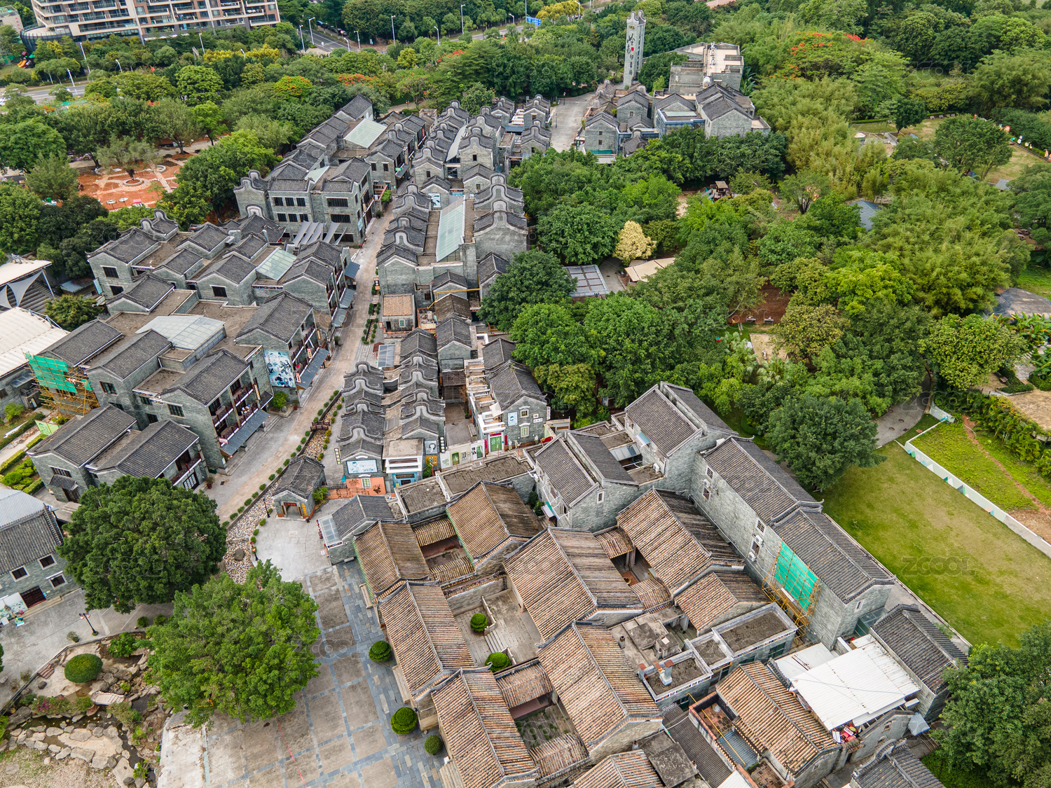 航拍广州岭南印象园建筑景观