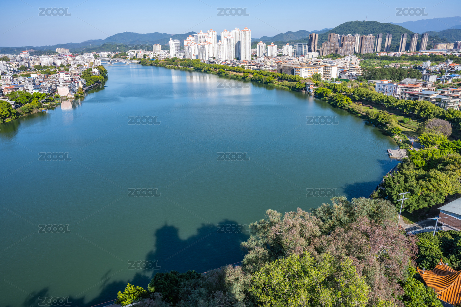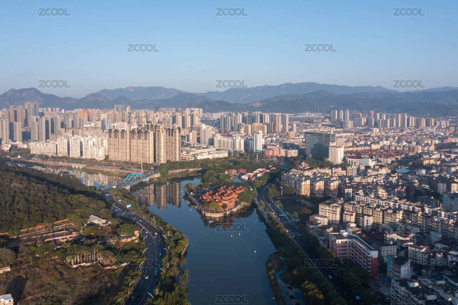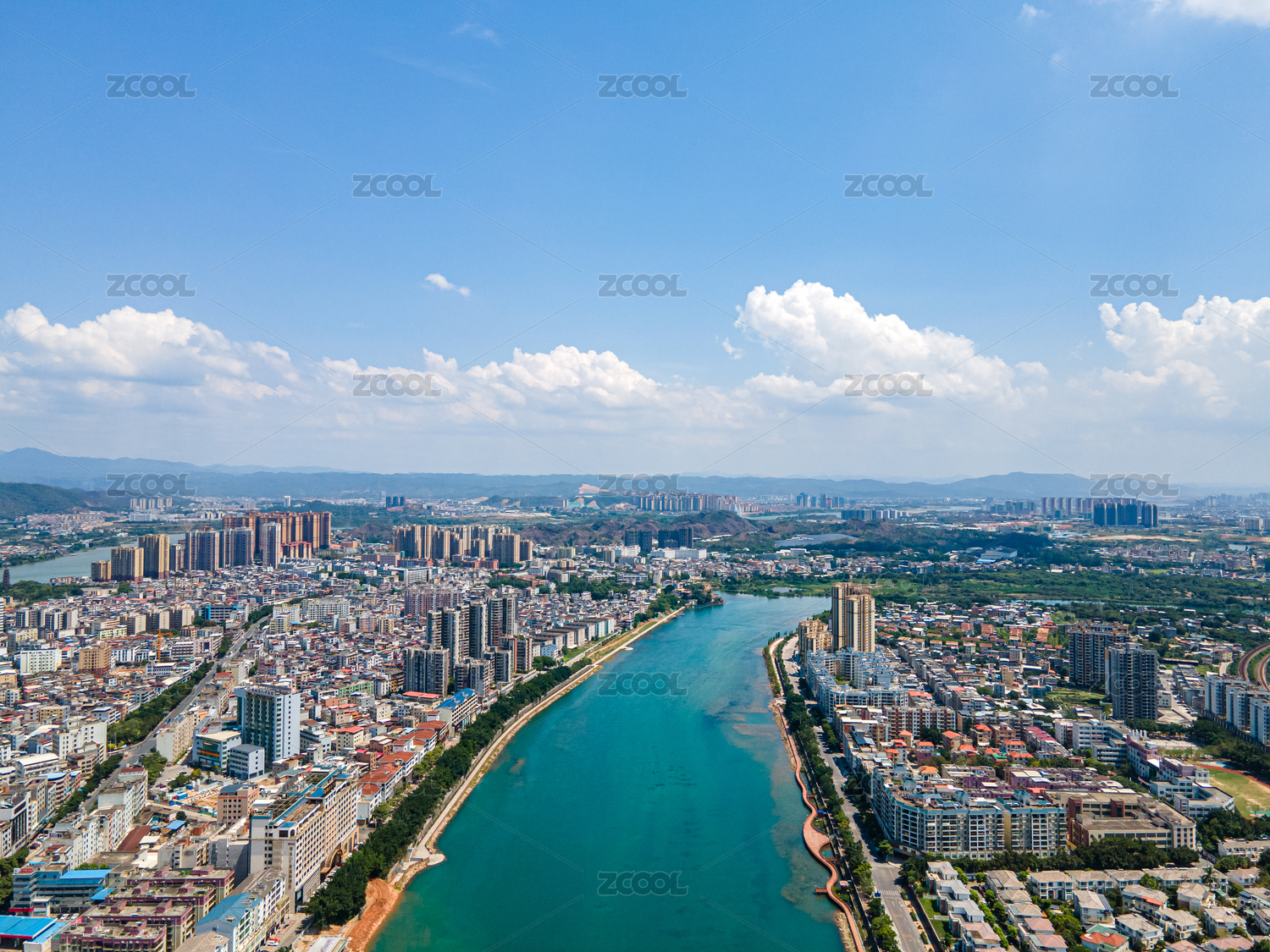 广东省河源市城市景观航拍风光