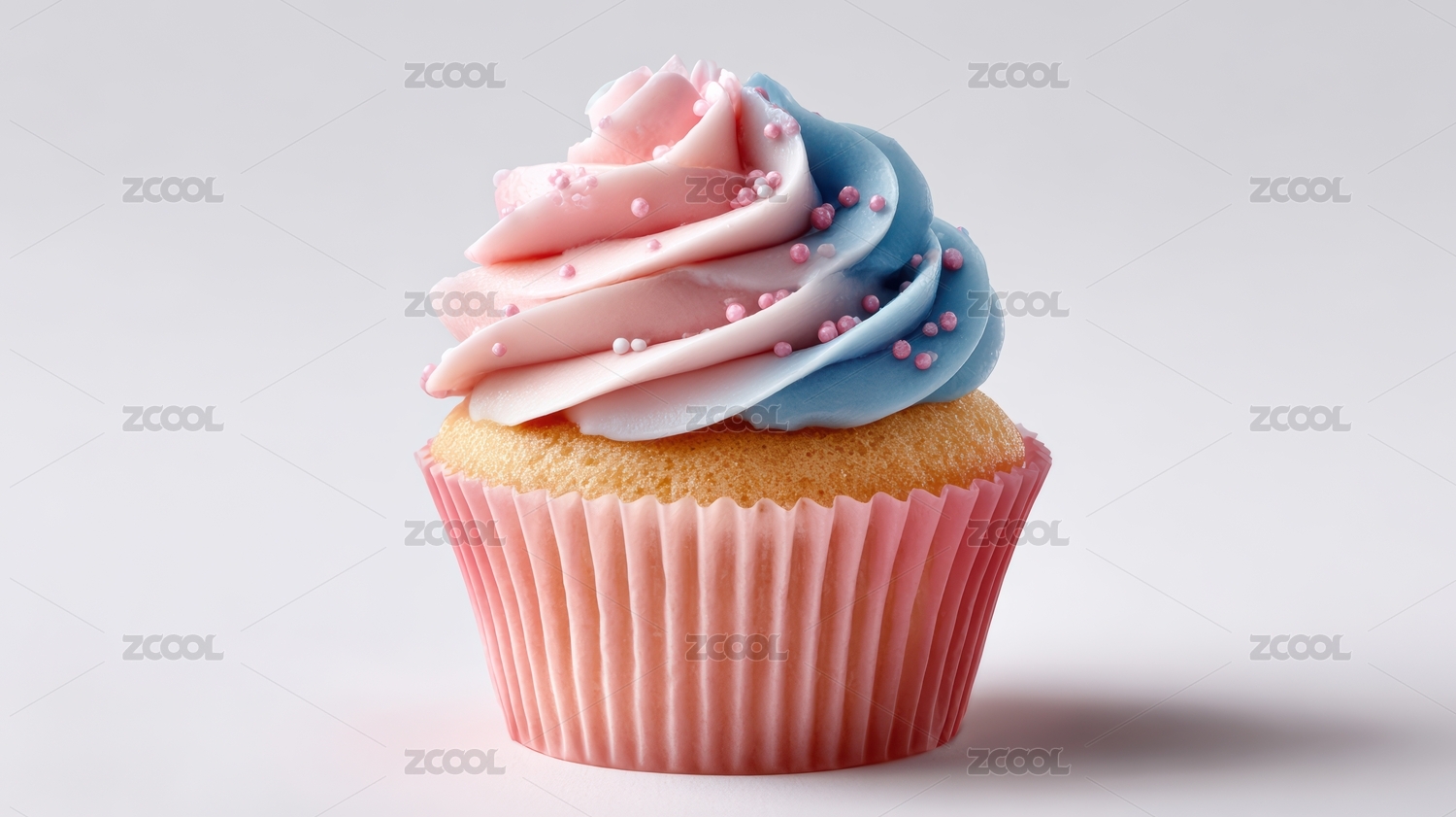 粉色纸杯蛋糕上的蓝粉双色奶油