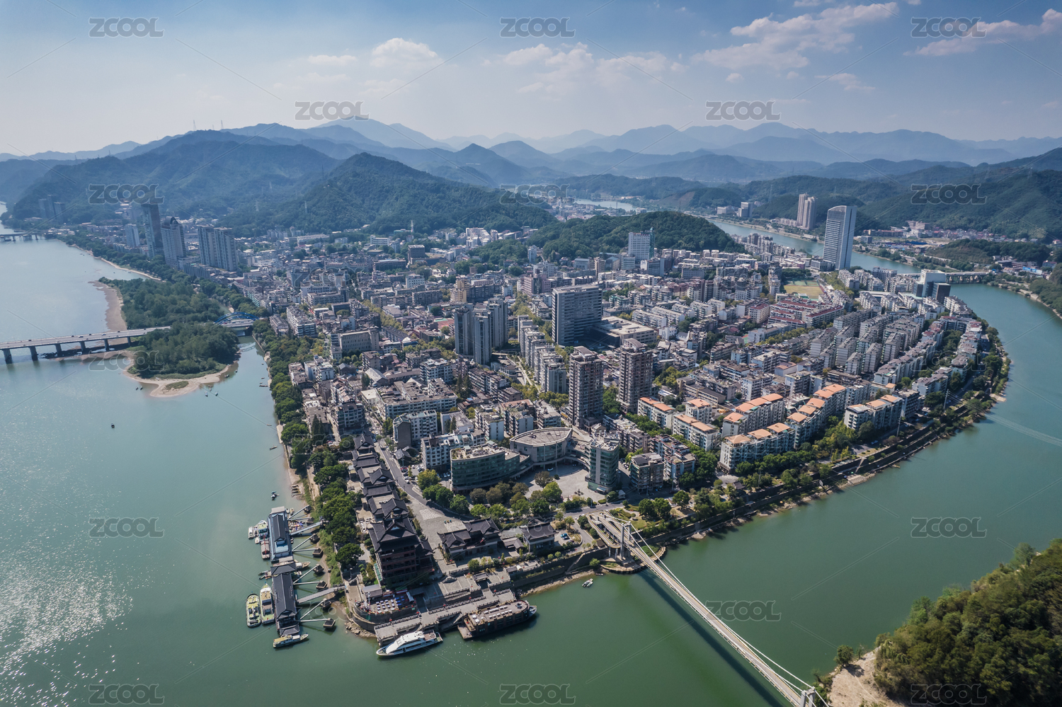 绿水绕城浙江青田县小镇城市风光