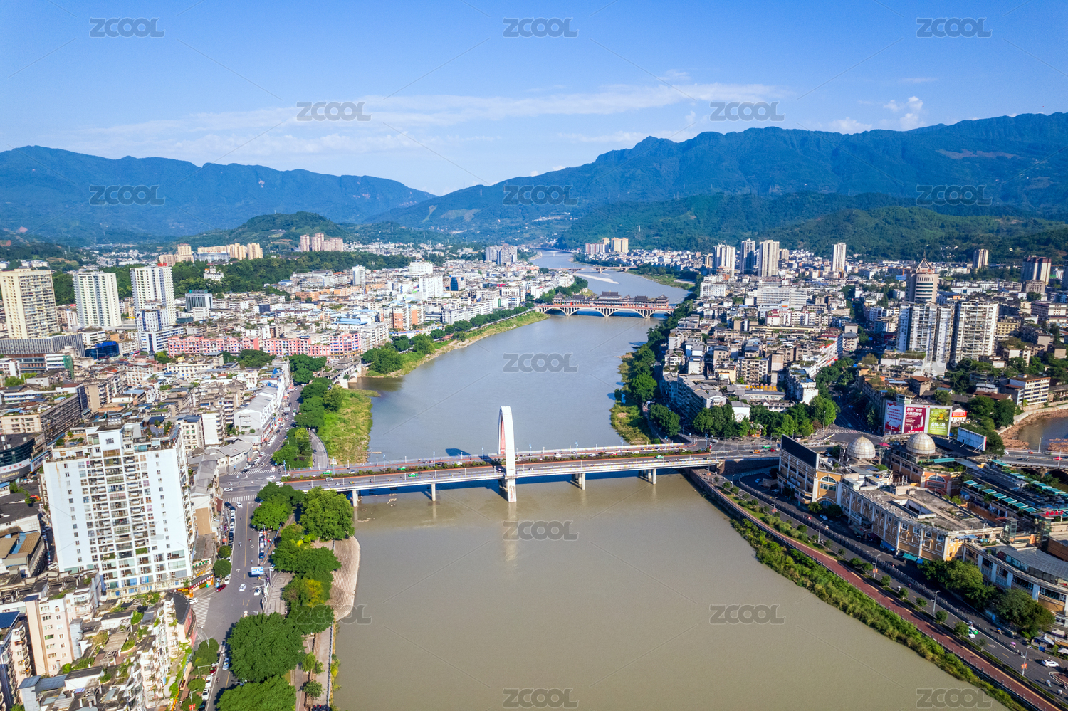 四川雅安廊桥雅州廊桥雅安大桥白昼晴天航拍