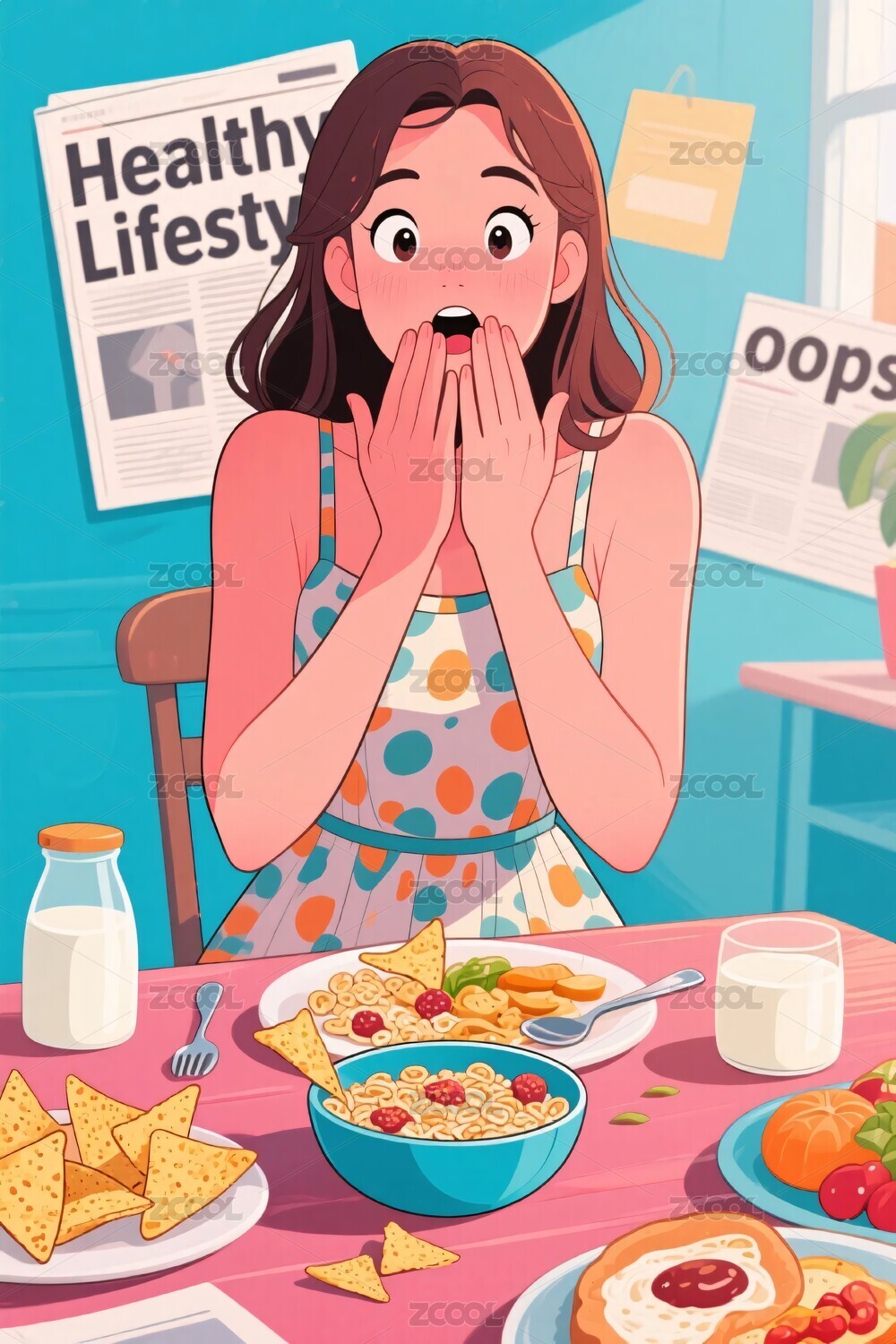 少女餐前惊讶插画