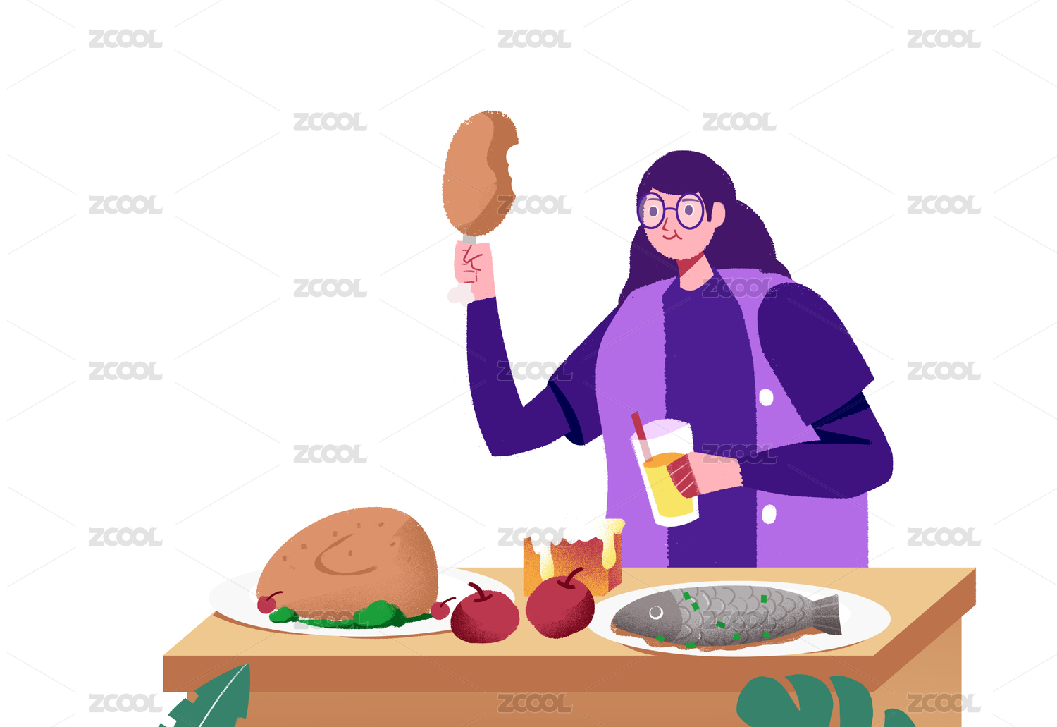 吃健康营养美食的女孩插画