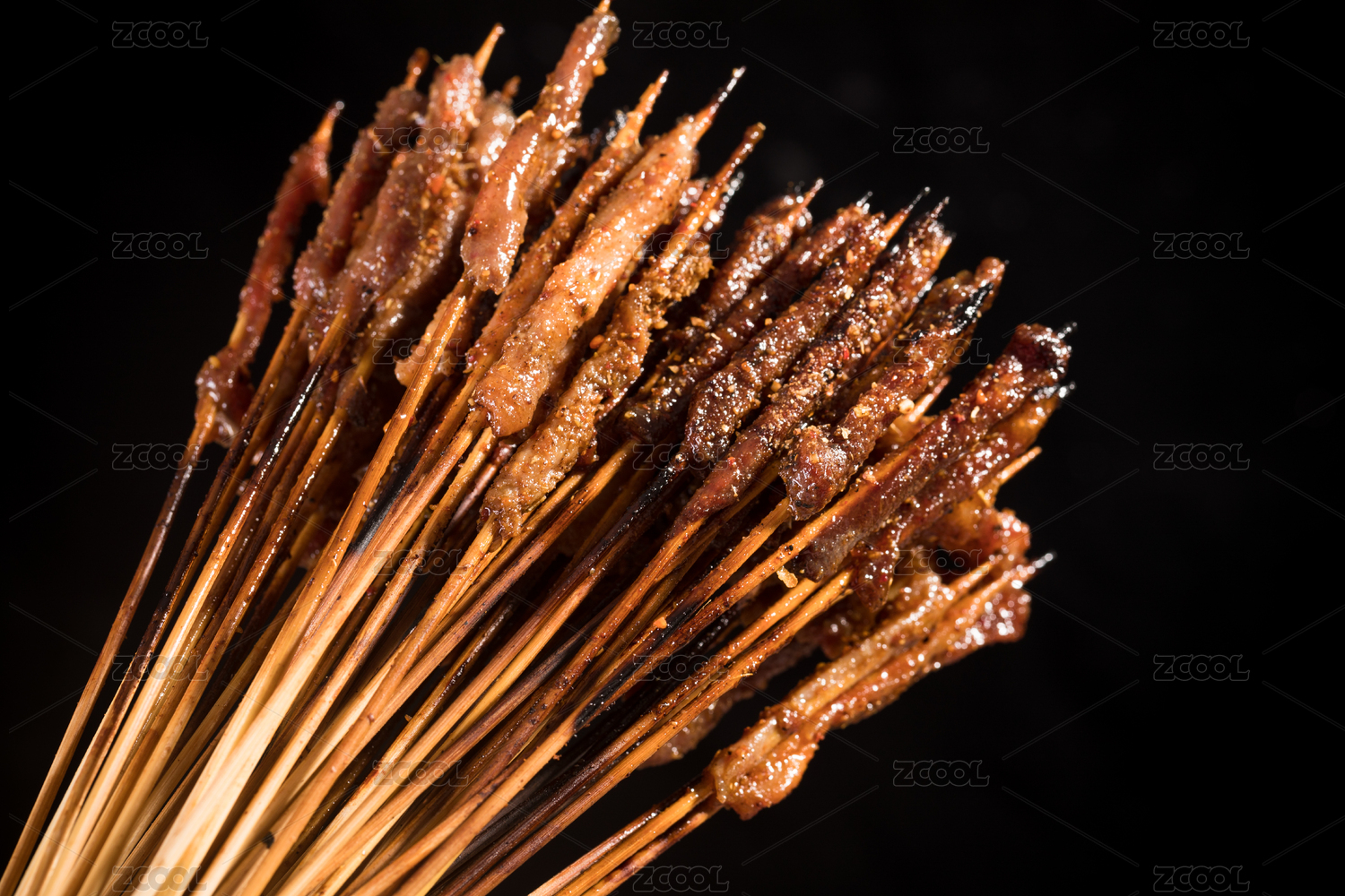 竹签串着炭火烤制麻辣烤肉串烤牛肉把把烧烤