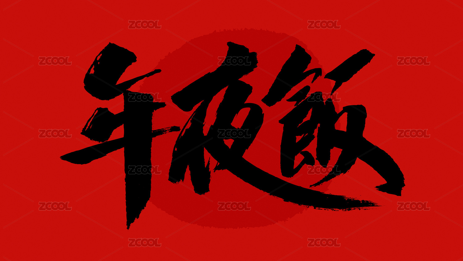 年夜饭手写字体书法字毛笔字艺术字美术字