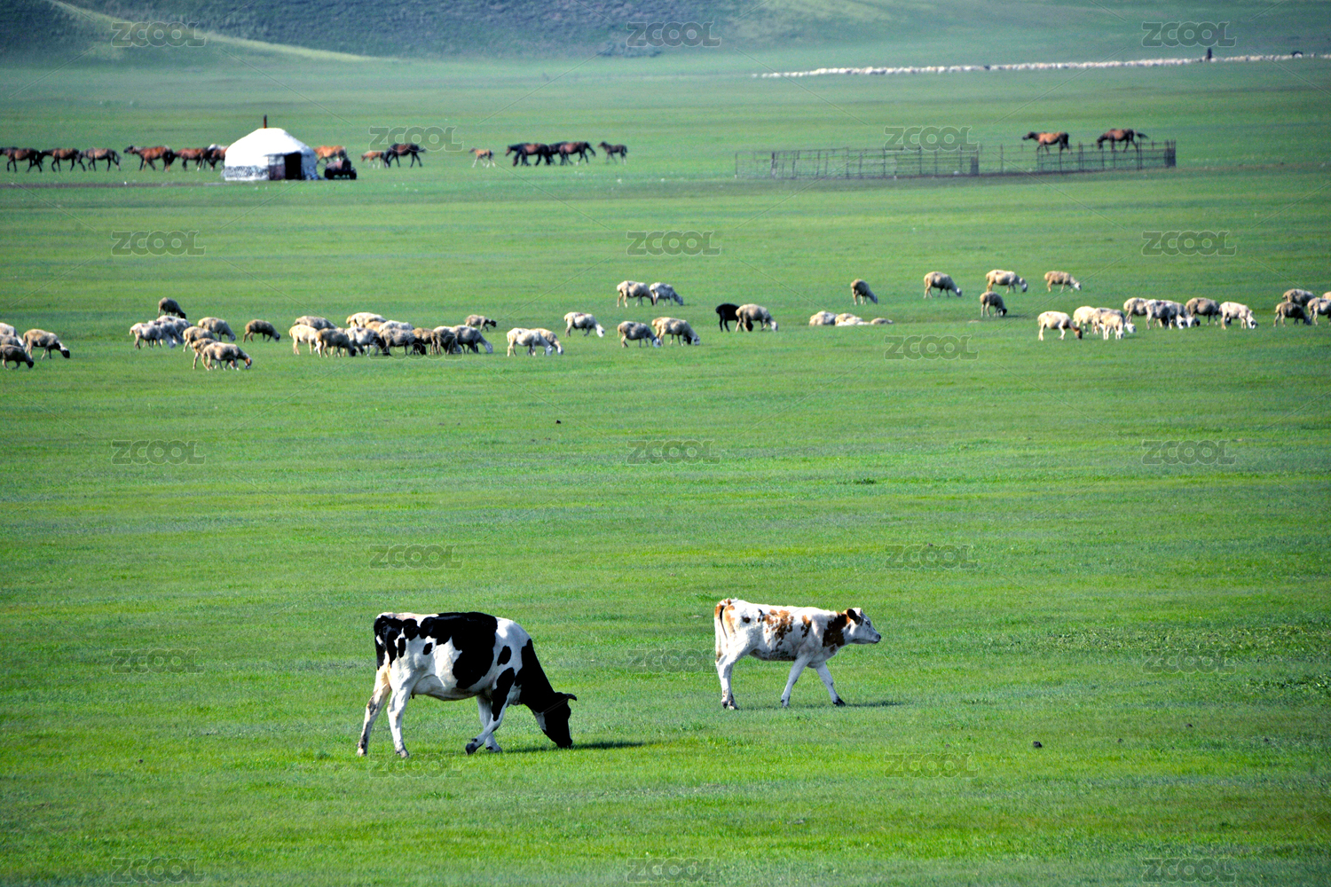 莫尔格勒河畔金帐汗草原的羊群、马群、牛群