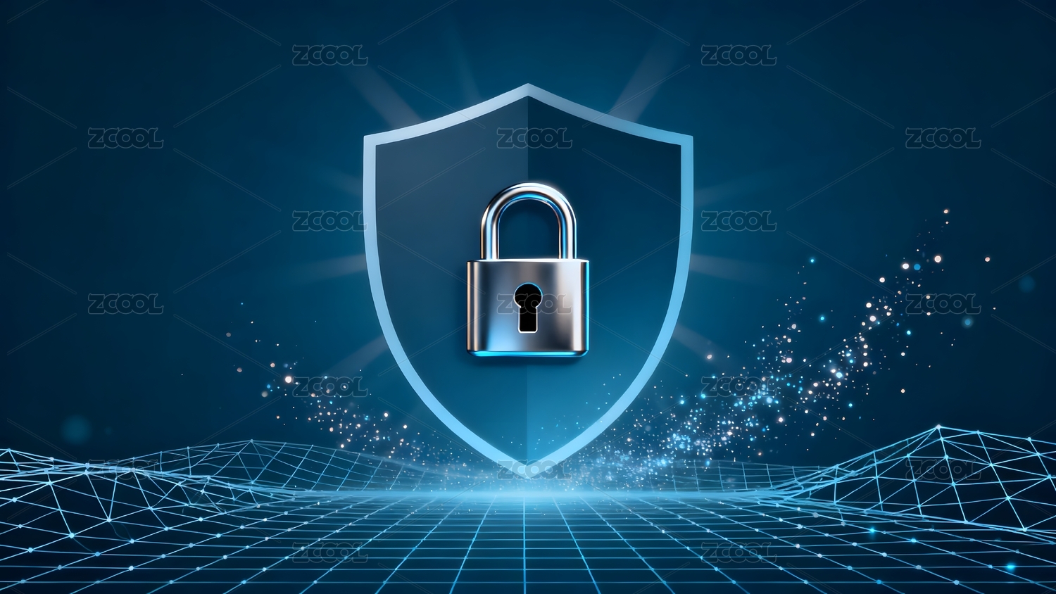 WIFI无线网的挂锁与指纹识别功能的盾牌3D渲染