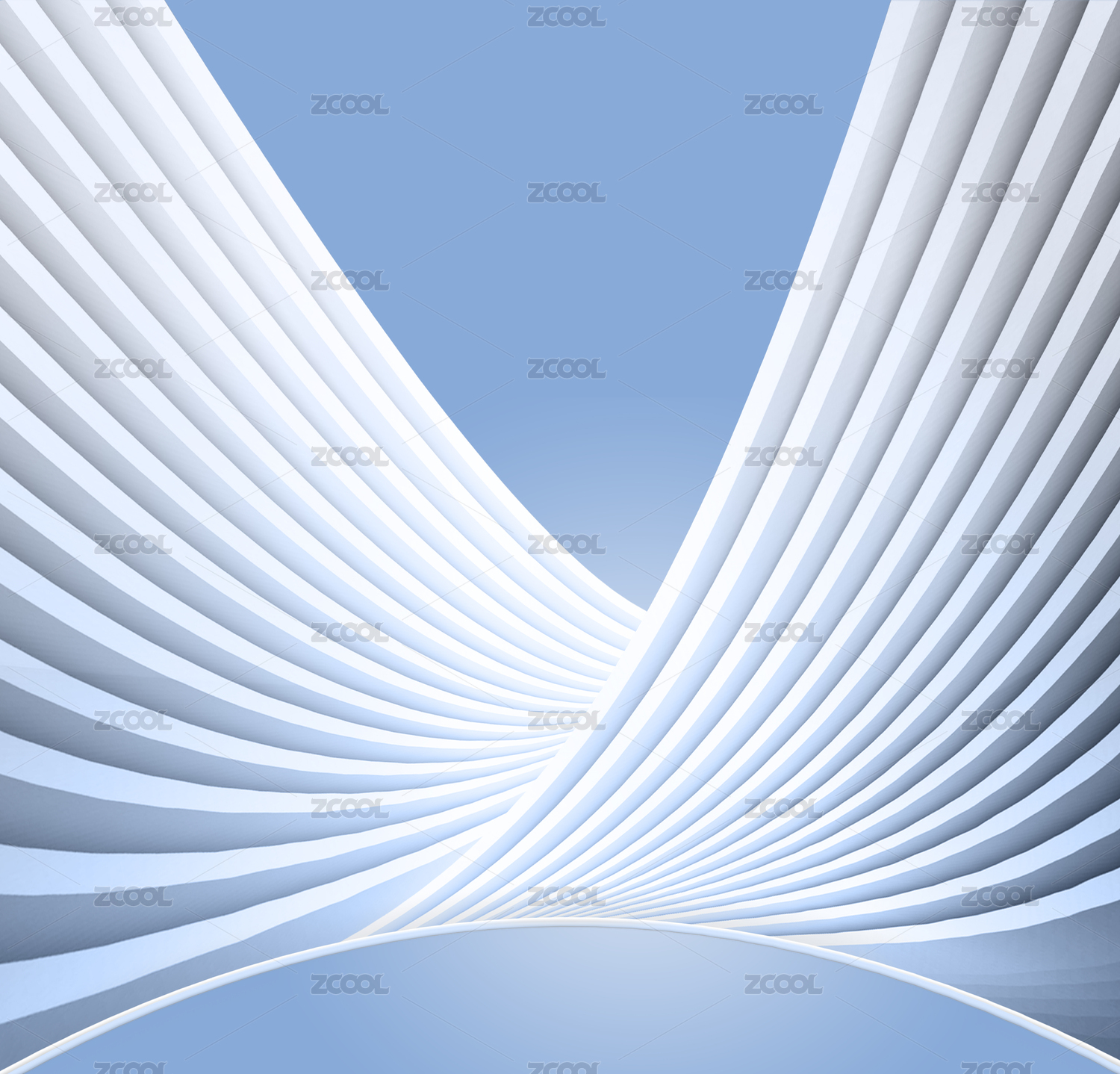 白色未来主义建筑弯曲线条质感纹理3D渲染