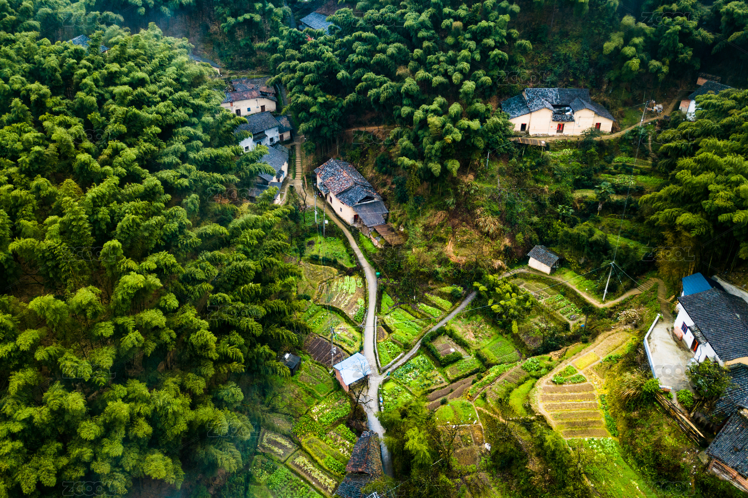 航拍中国江苏常州溧阳天目湖镇竹林掩映村落