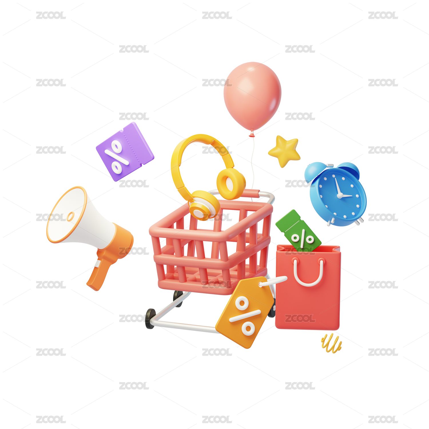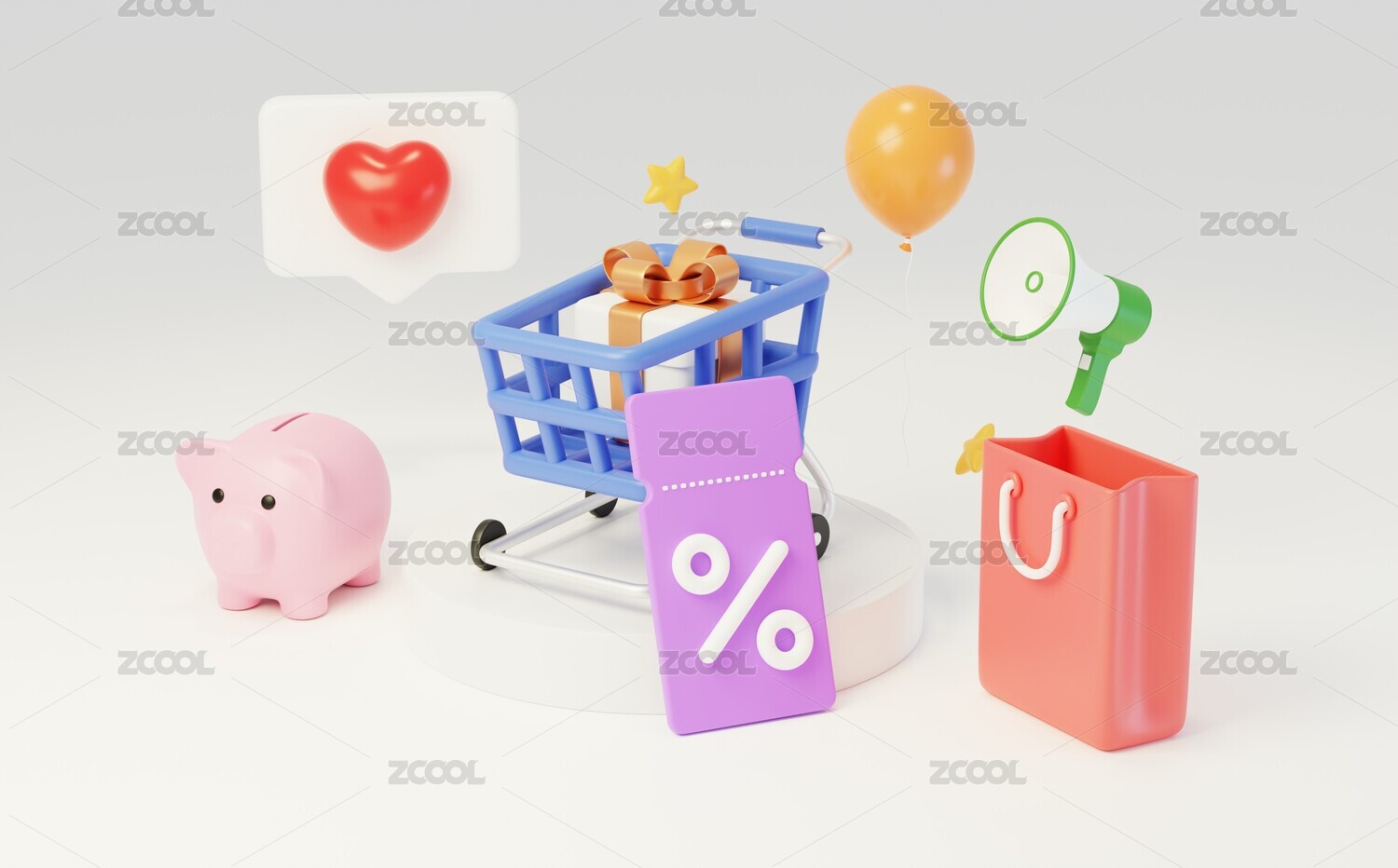3D,插画,背景,活动,折扣,电商,礼物,购物,促销,销售
