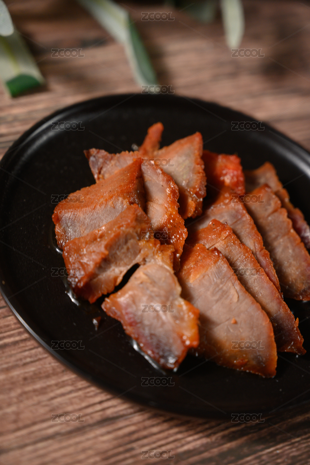 桌面上的盘子里的美味可口的叉烧