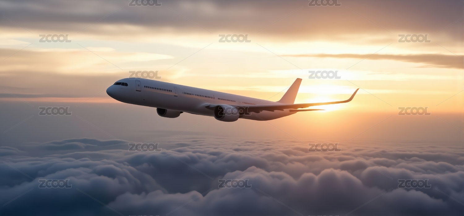 亚洲夏季商用客机飞行在美丽晴朗的天空