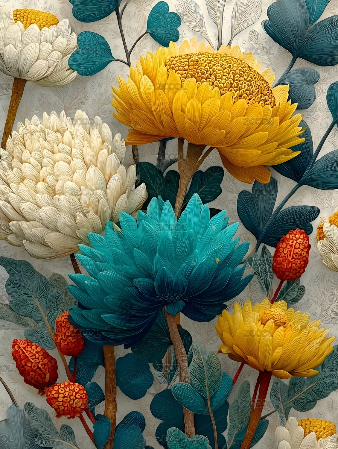 四方连续绚丽多彩的菊花印花背景