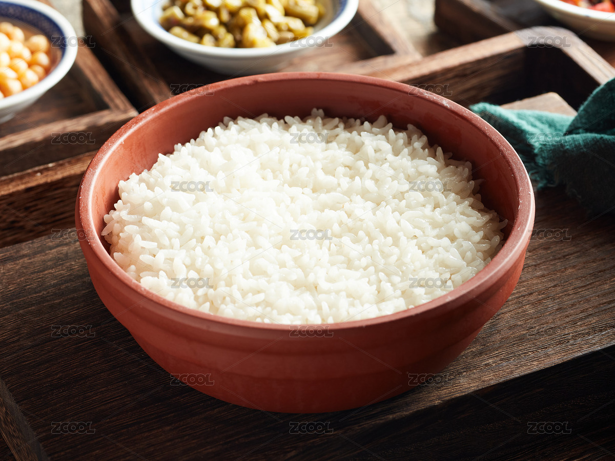 用钵仔盛着的蒸米饭钵仔饭放在桌上
