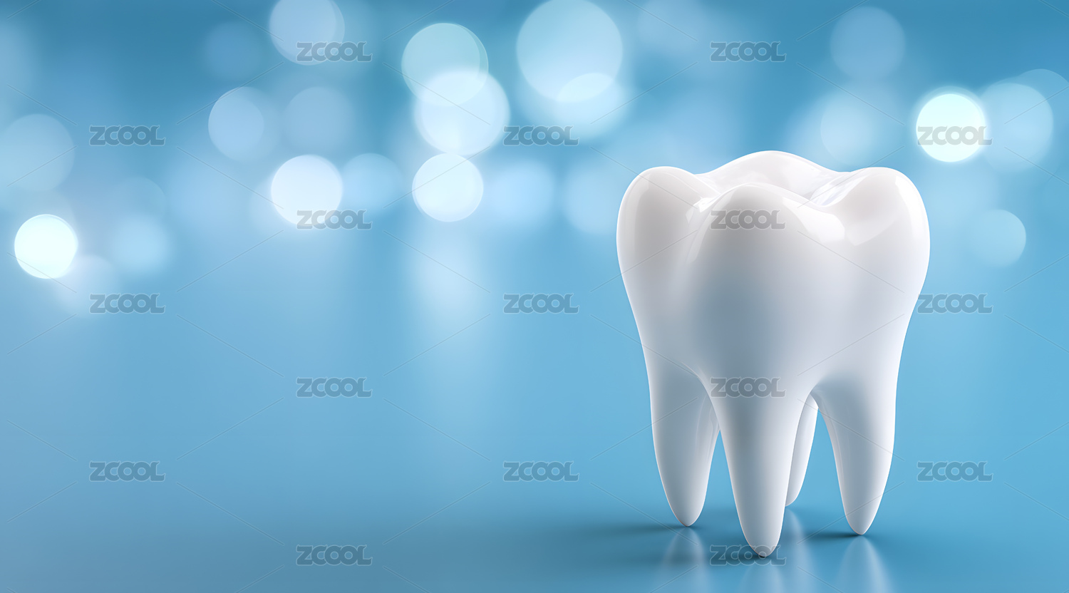 蓝色背景上一颗牙齿模型