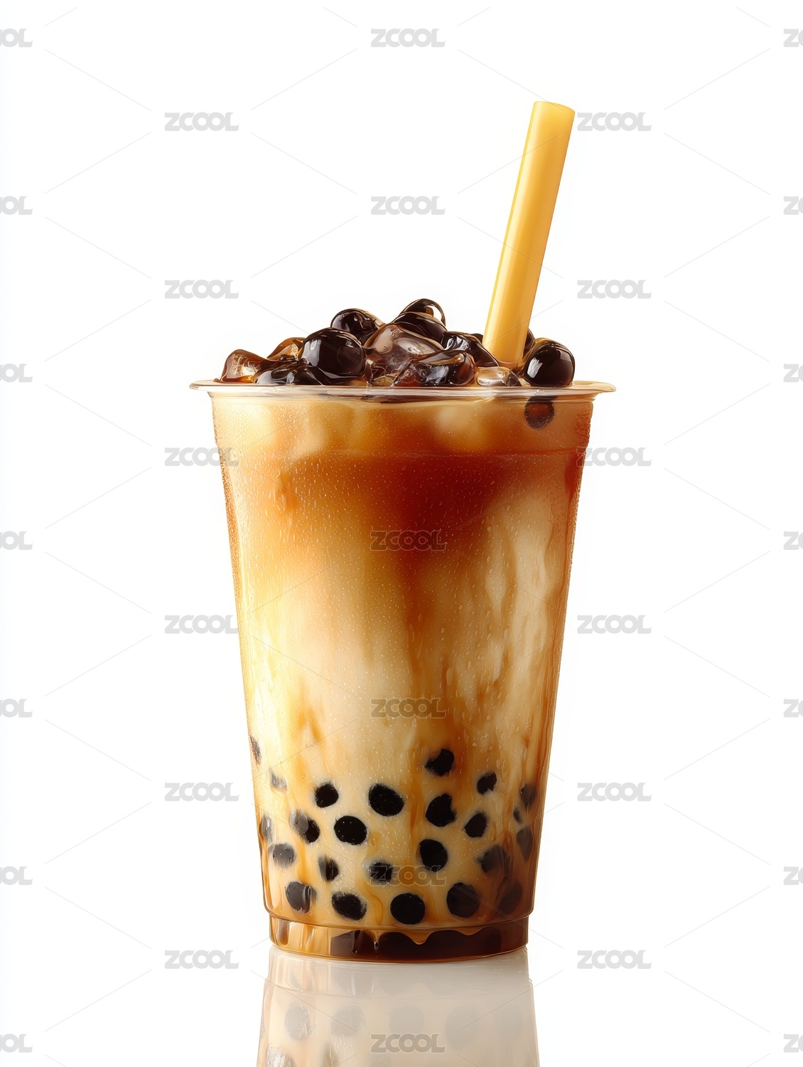 有一杯泡泡茶里面有稻草和黑莓高清图片