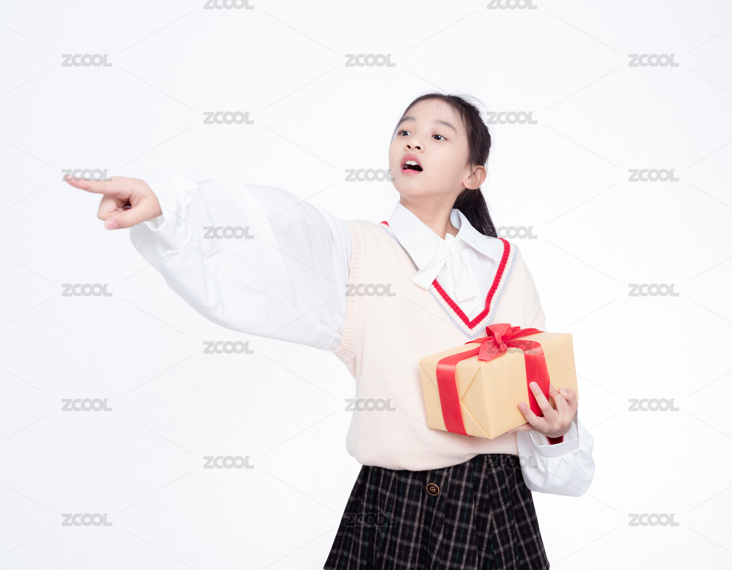 白背景前手持礼物盒的小女孩