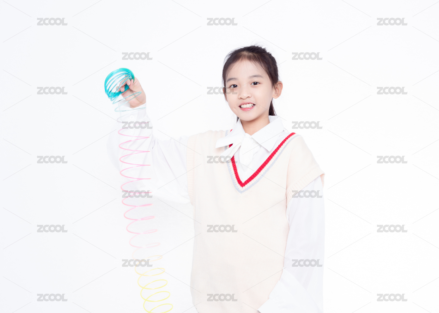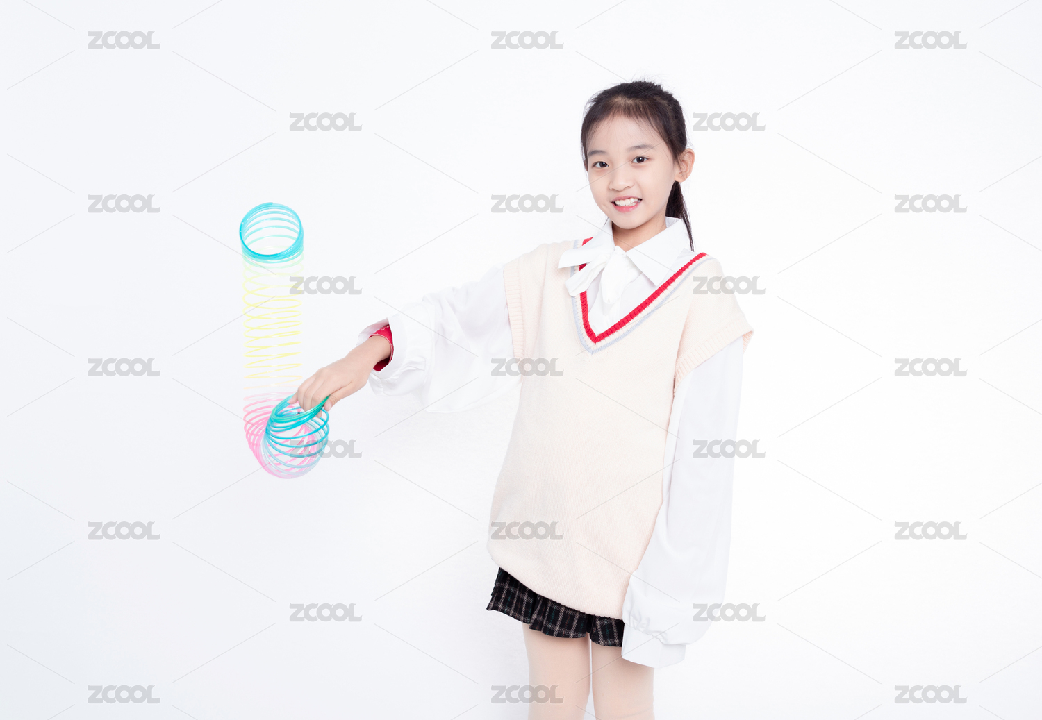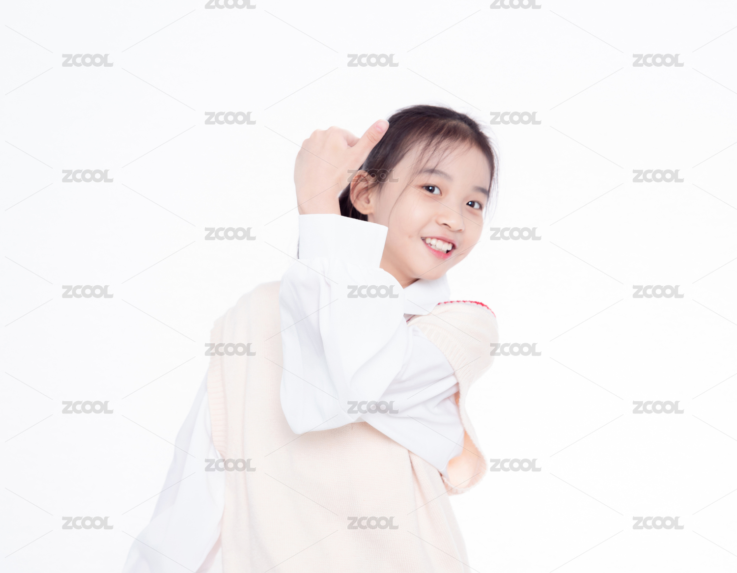 白色背景前小女孩