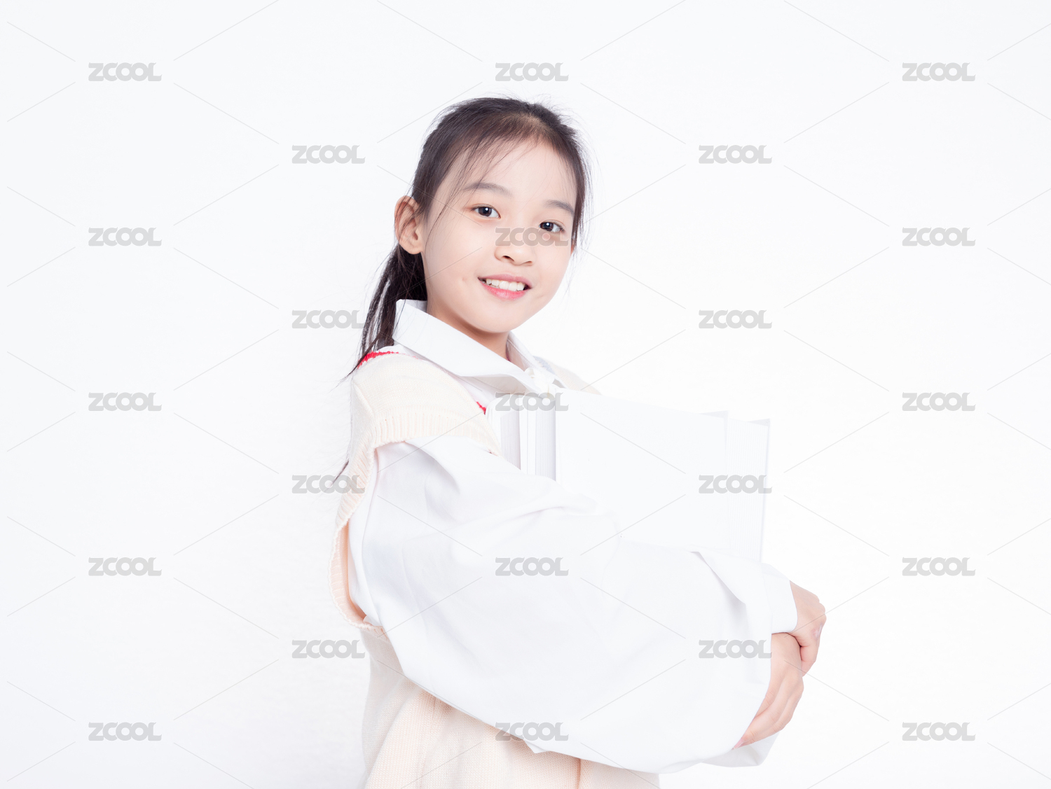 小女孩拿着白色书本