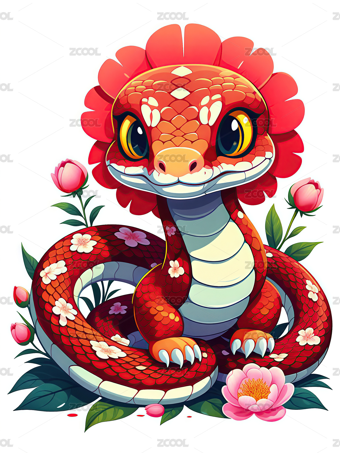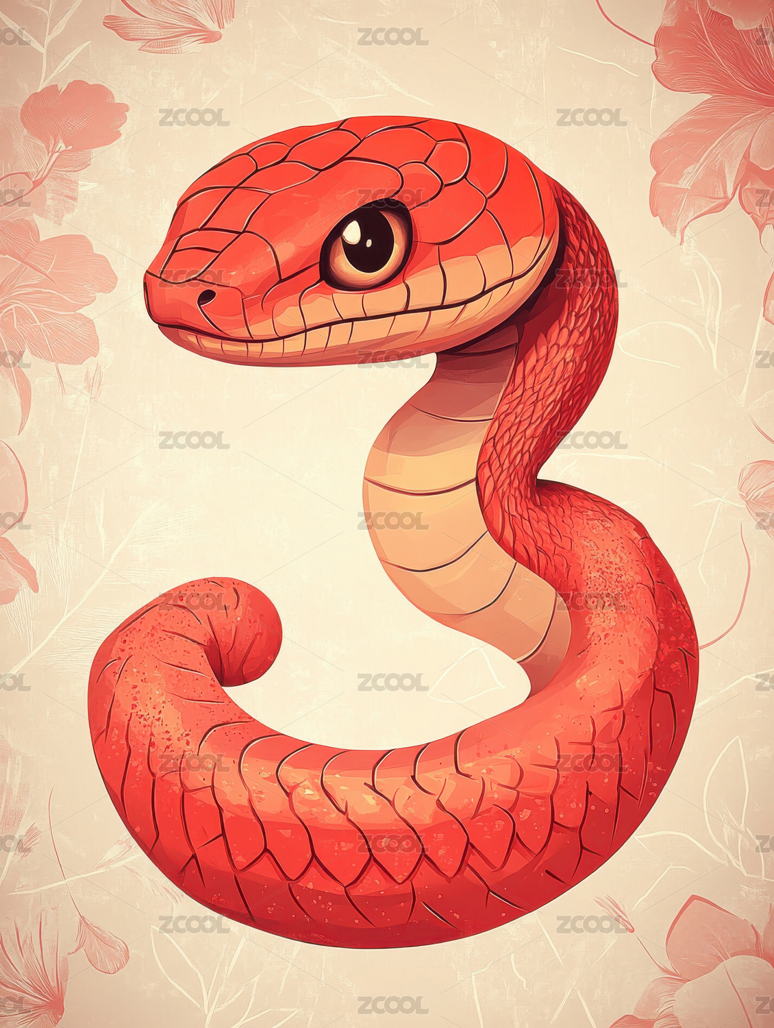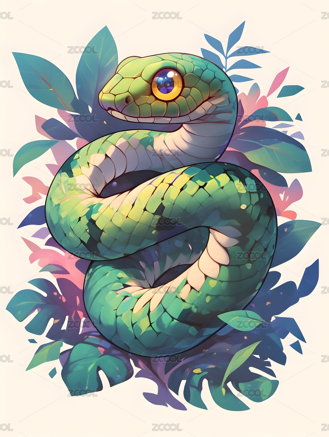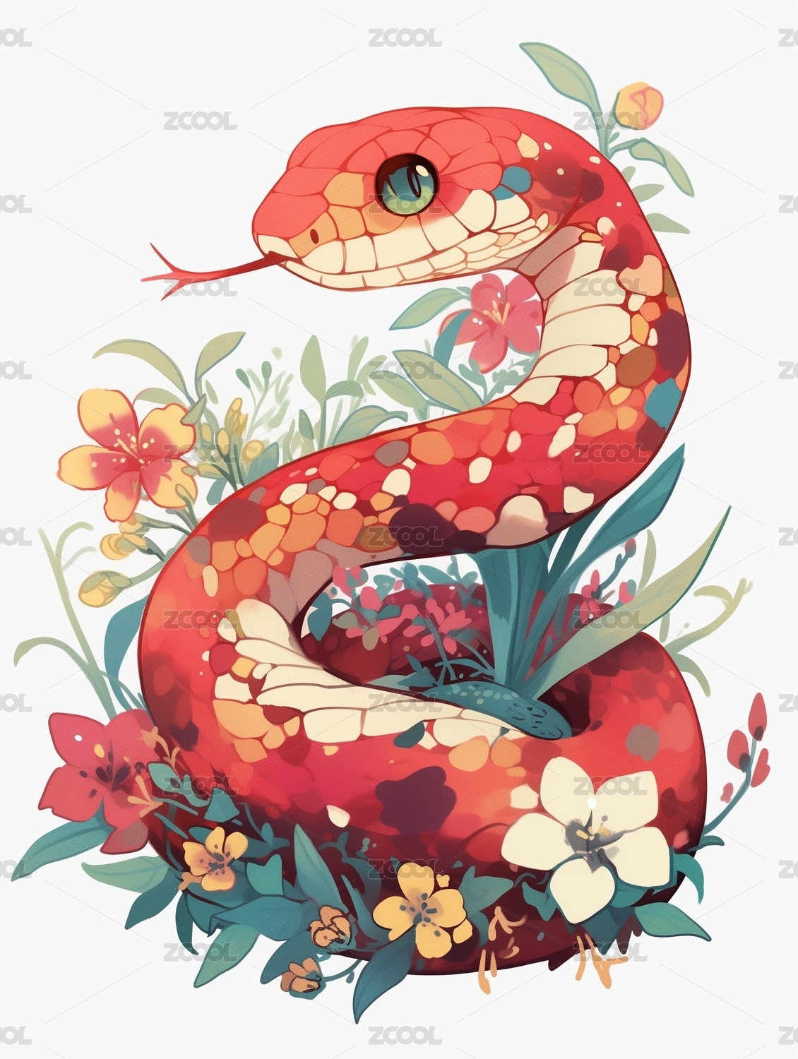蛇,2025年,蛇年,彩色,肖像,花,水彩画,图案,色彩,色彩缤纷
