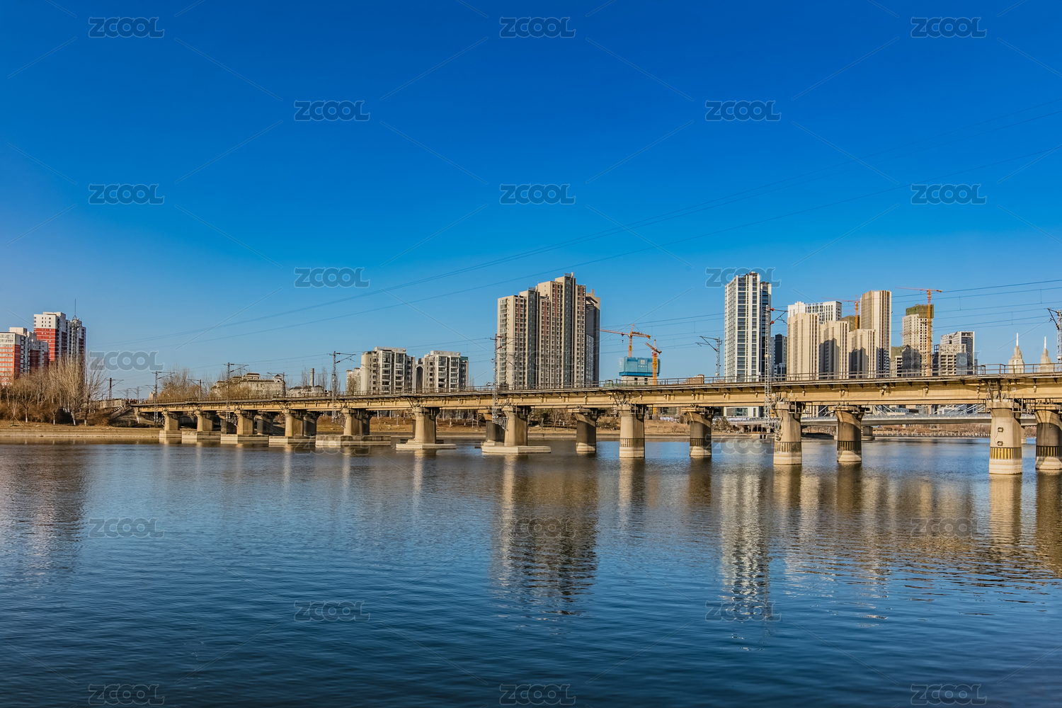 北京市通州区大运河外滩高铁桥梁都市建筑风光