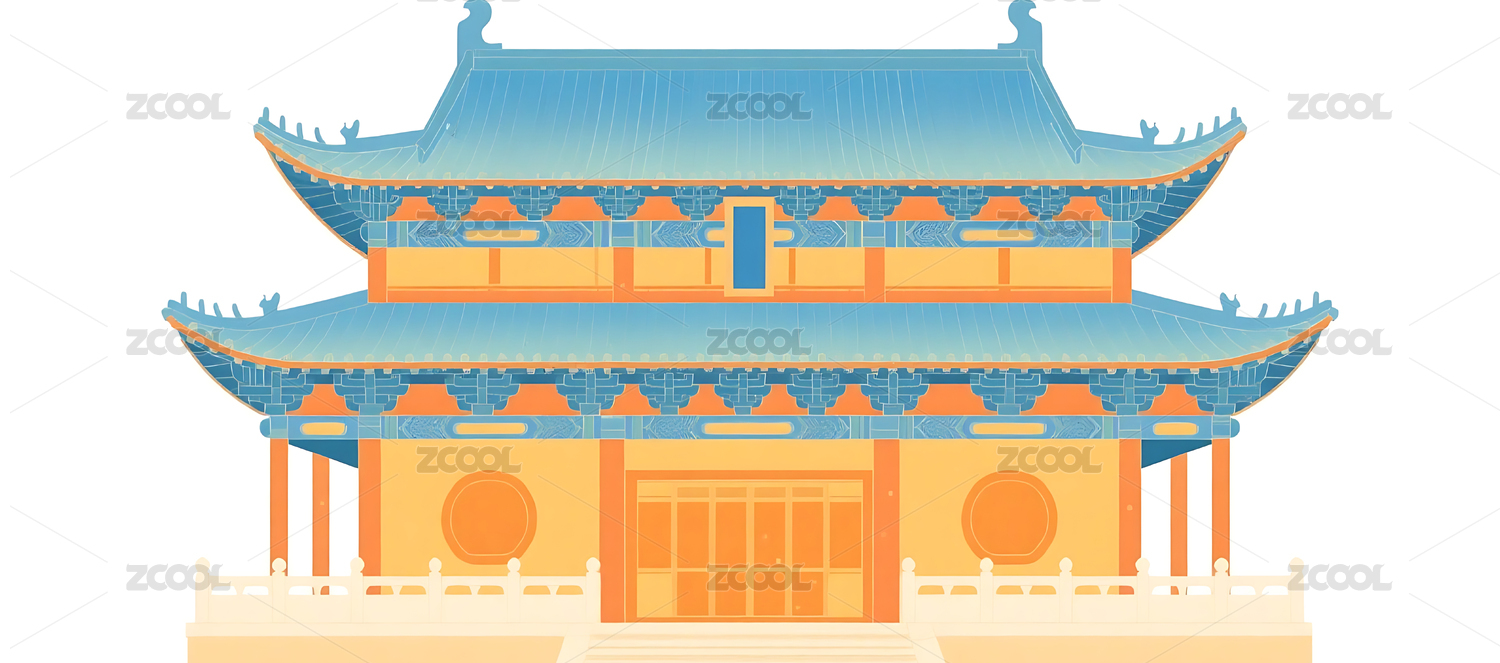 国风,国潮,古楼,宫殿,建筑,插画,卡通