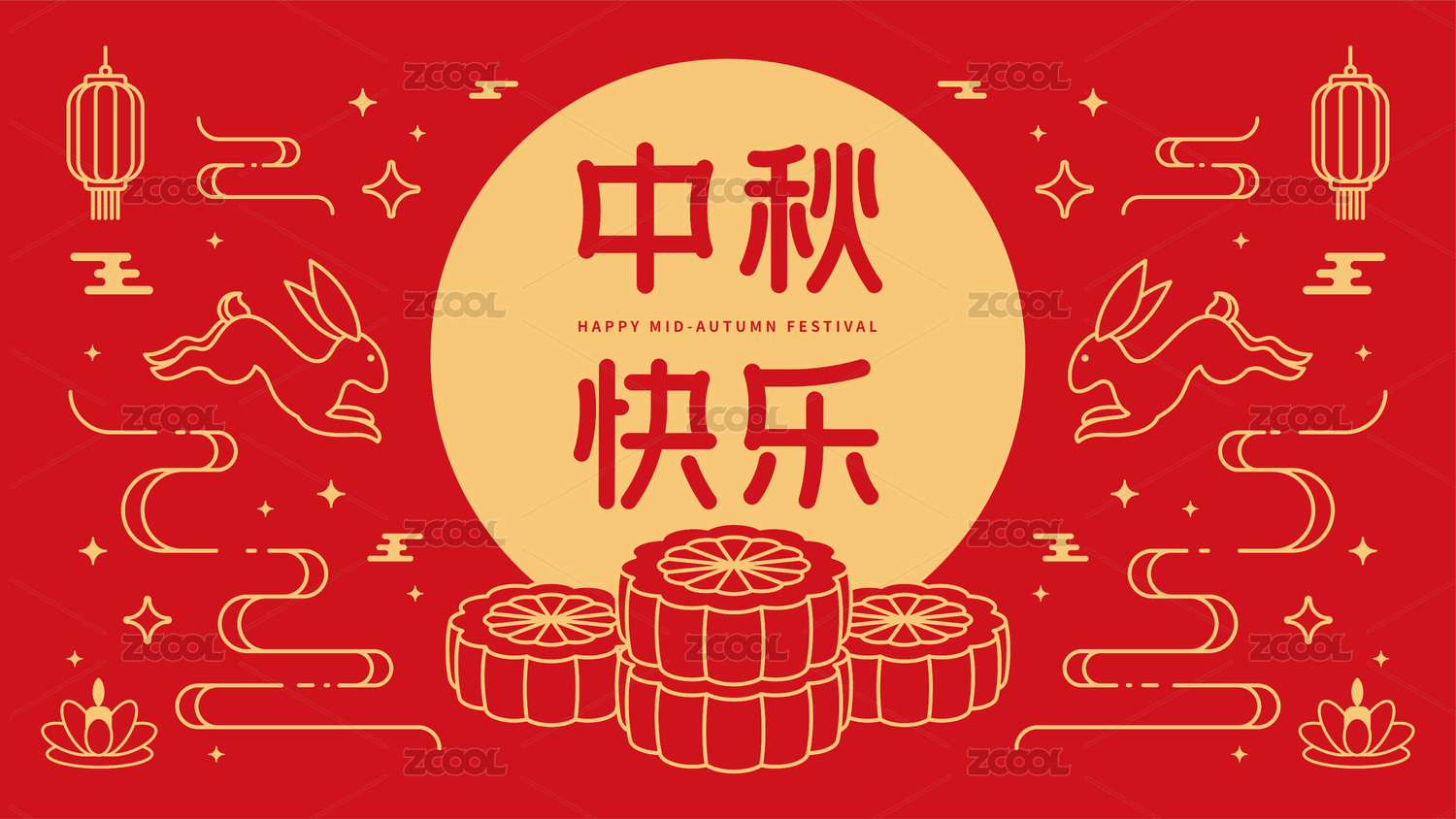 中国传统节日中秋节横幅海报