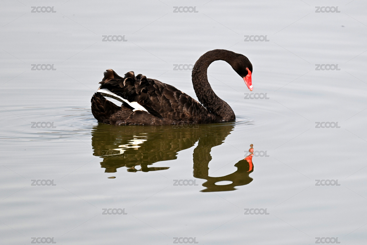 黑天鹅在平静湖面上游水