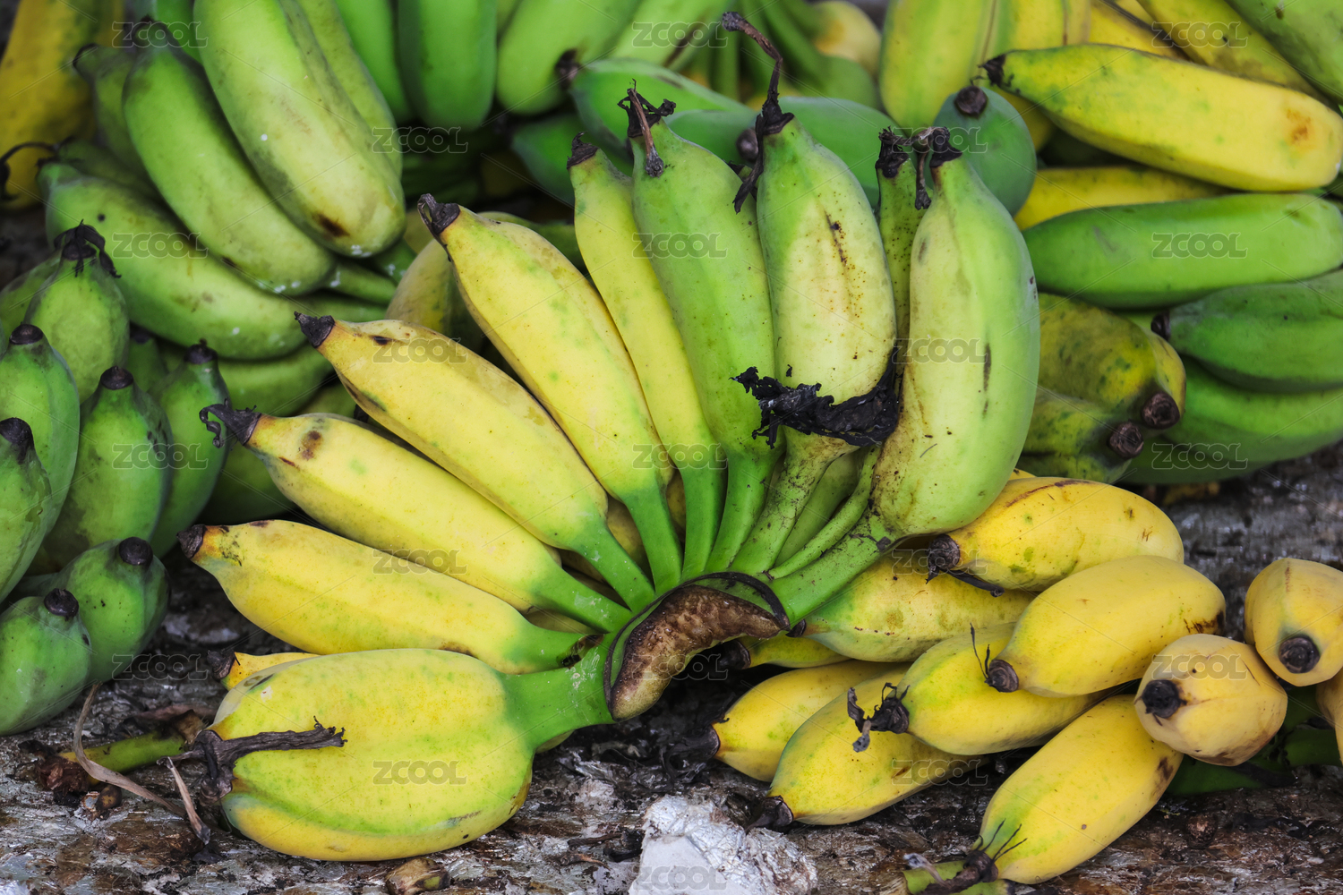 在泰国甲米镇市场里小摊上的新鲜绿色香蕉
