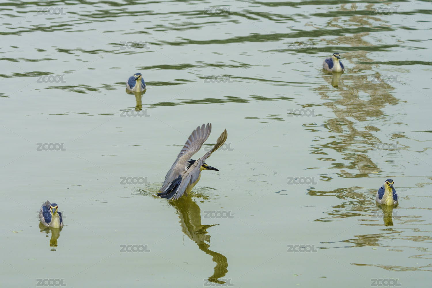 水面觅食的夜鹭鸟