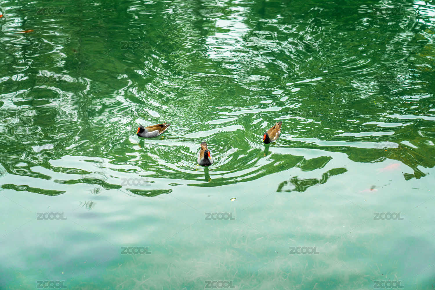 上海古漪园春日鸭子戏水特写照片