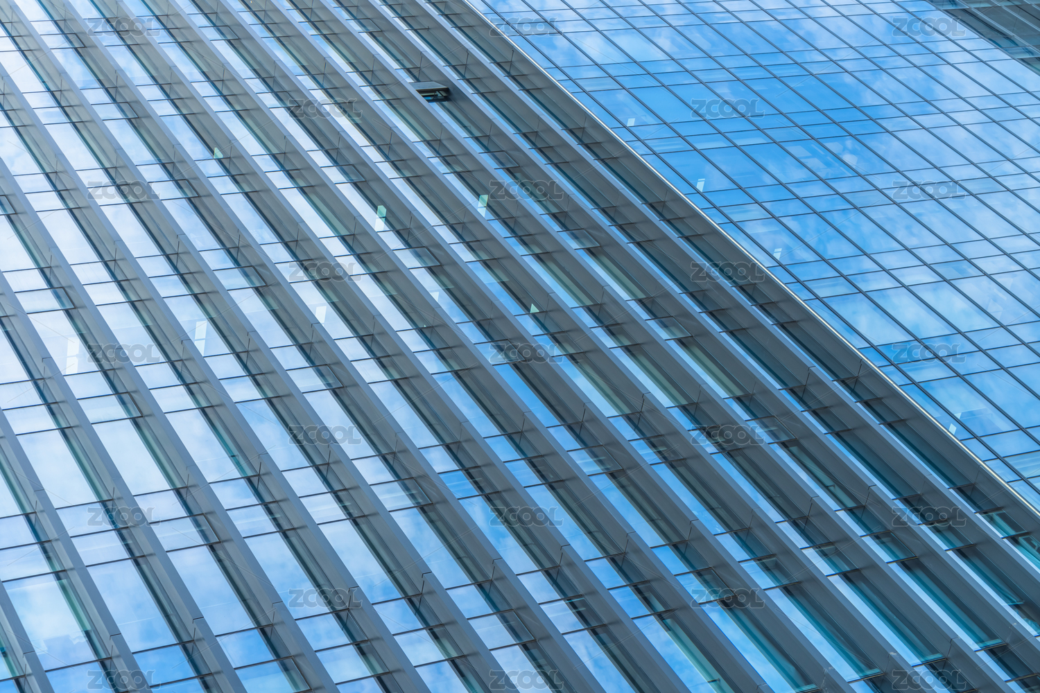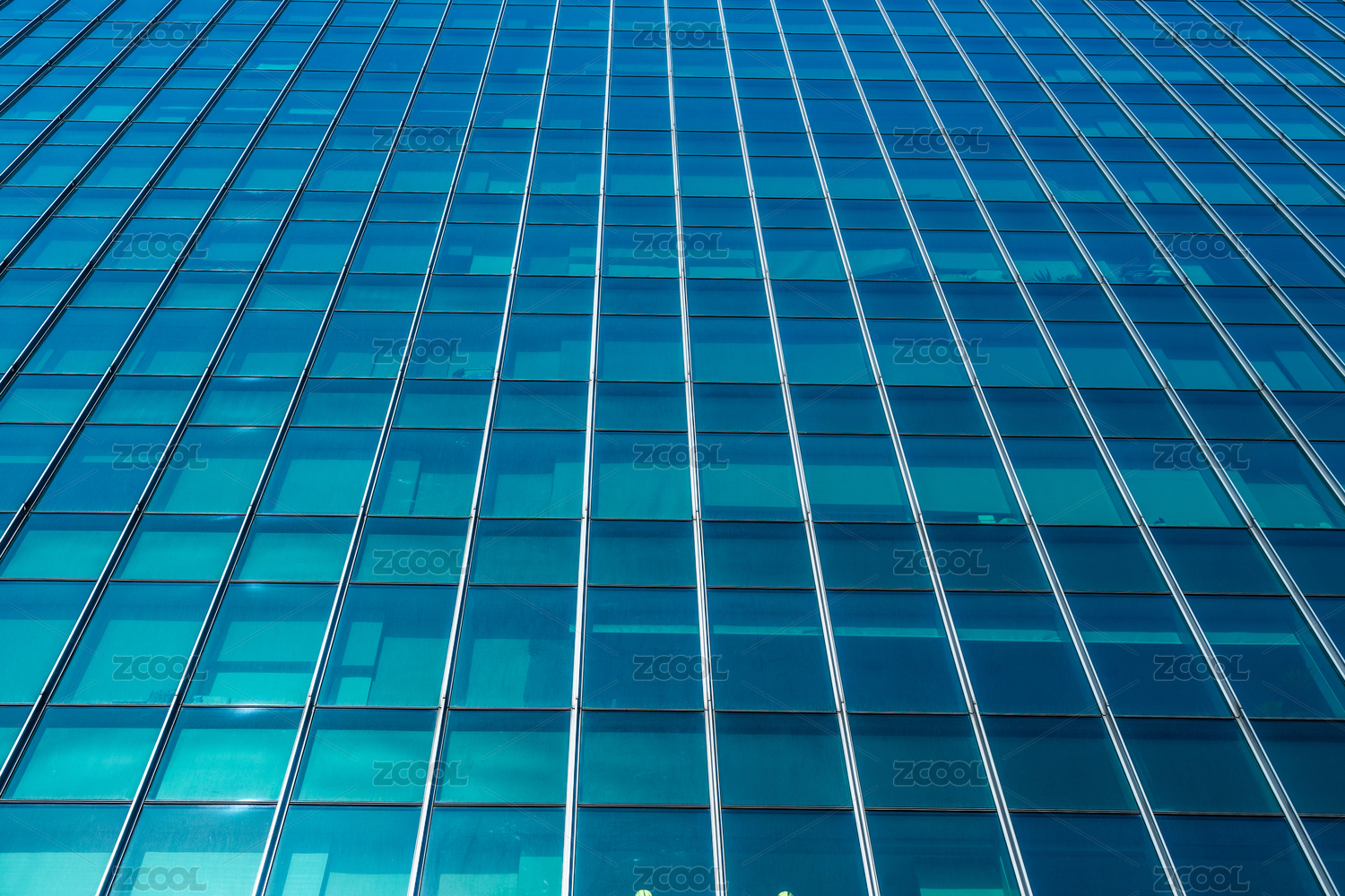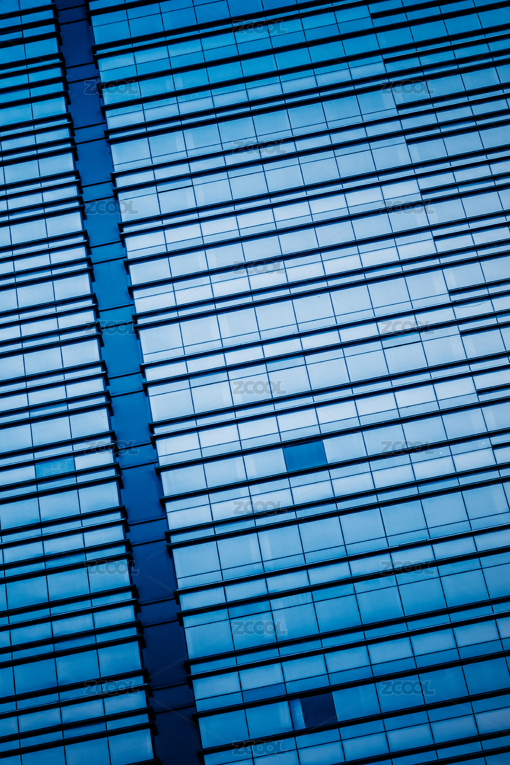 抽象的建筑摩天大楼的蓝色玻璃墙
