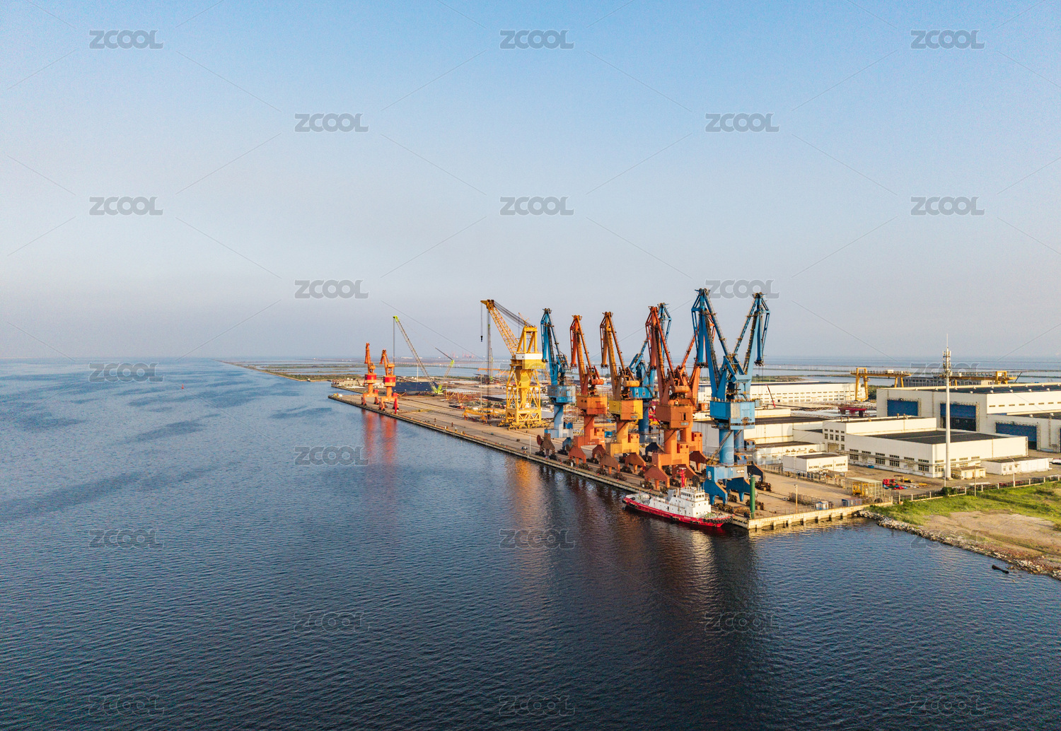 滨海港,航拍,码头,货轮,海运,电力发电厂,运输