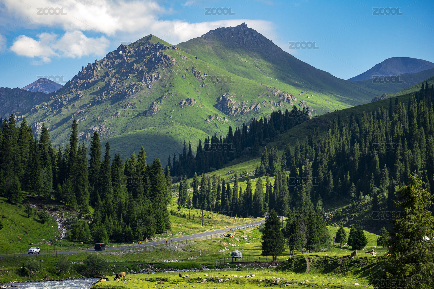 夏季晴天中国新疆伊犁伊昭公路沿线自然风景