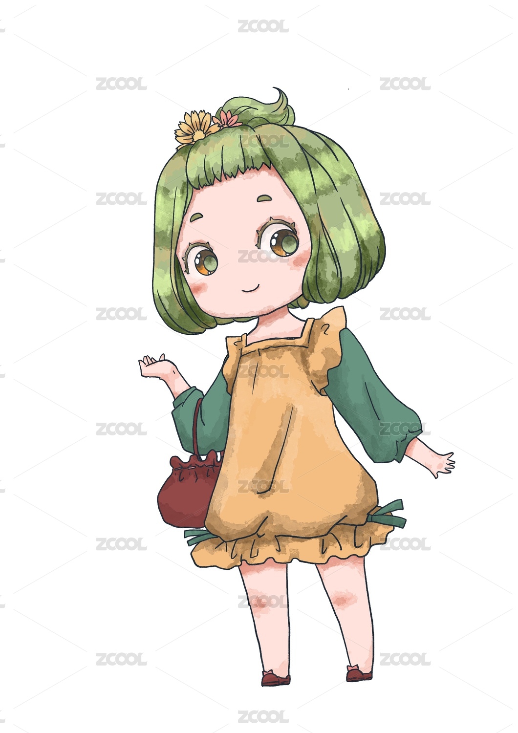 中餐食物拟人Q版可爱小女孩 手绘插画