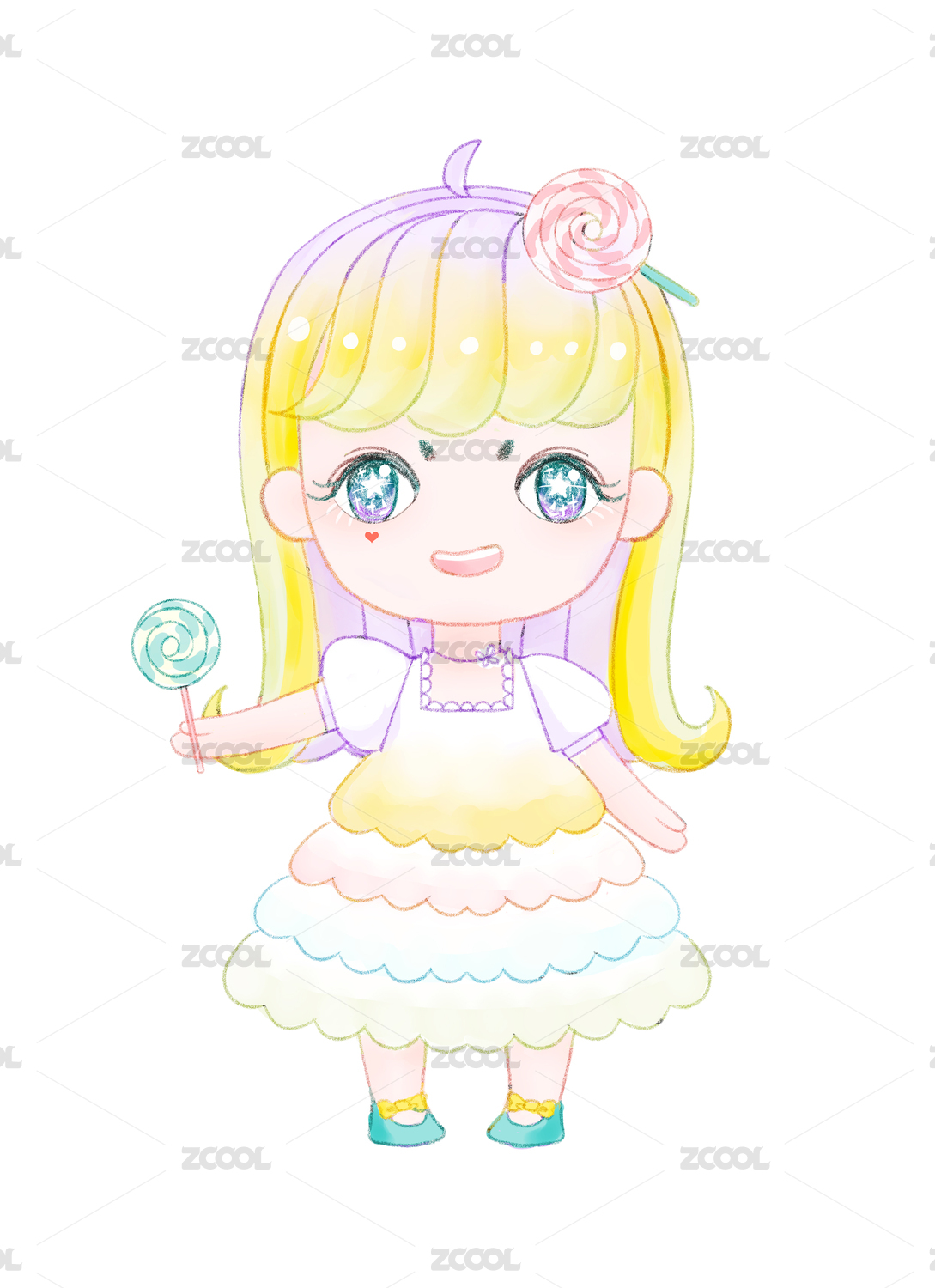甜点食物拟人Q版可爱小女孩 手绘插画