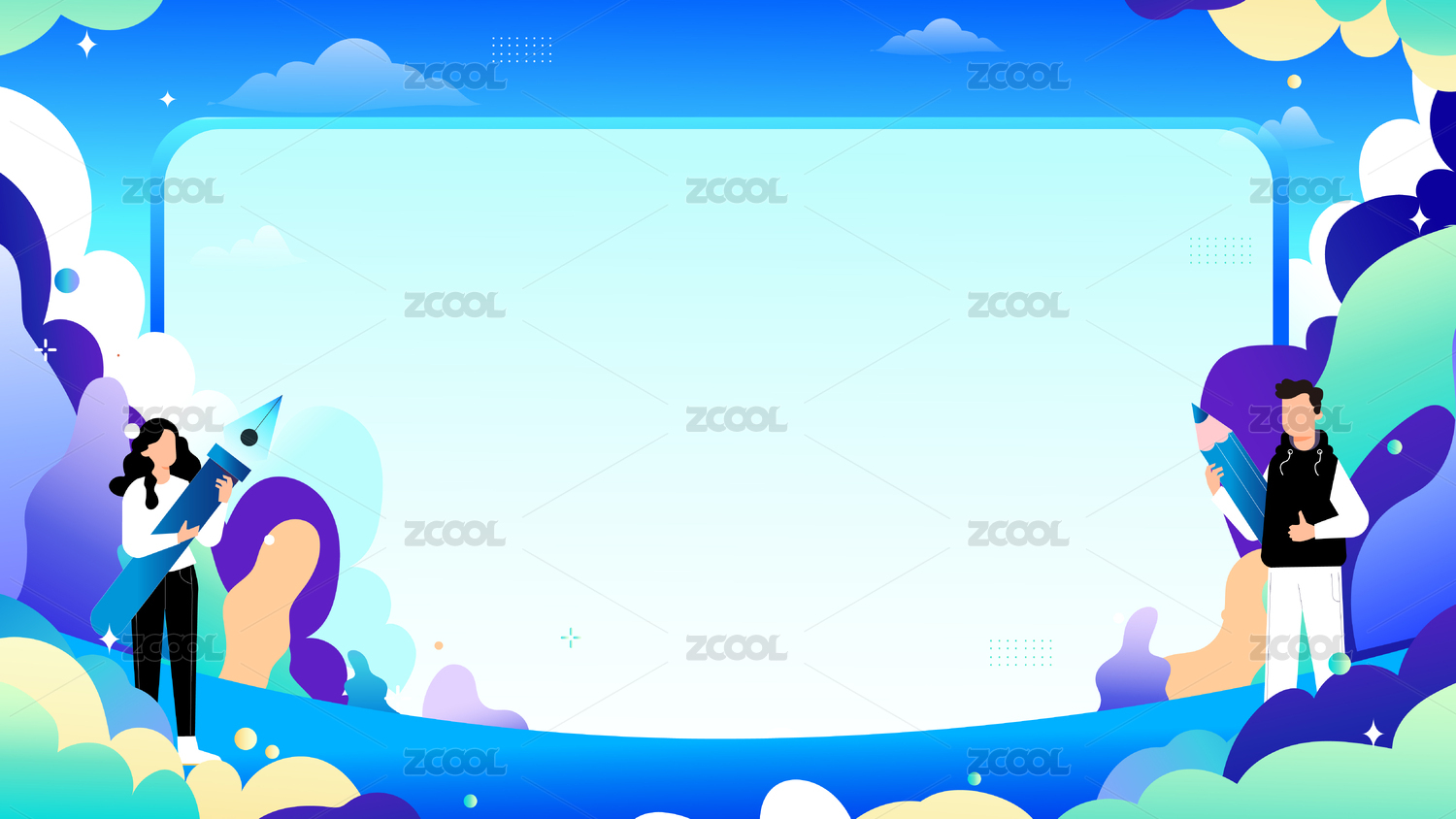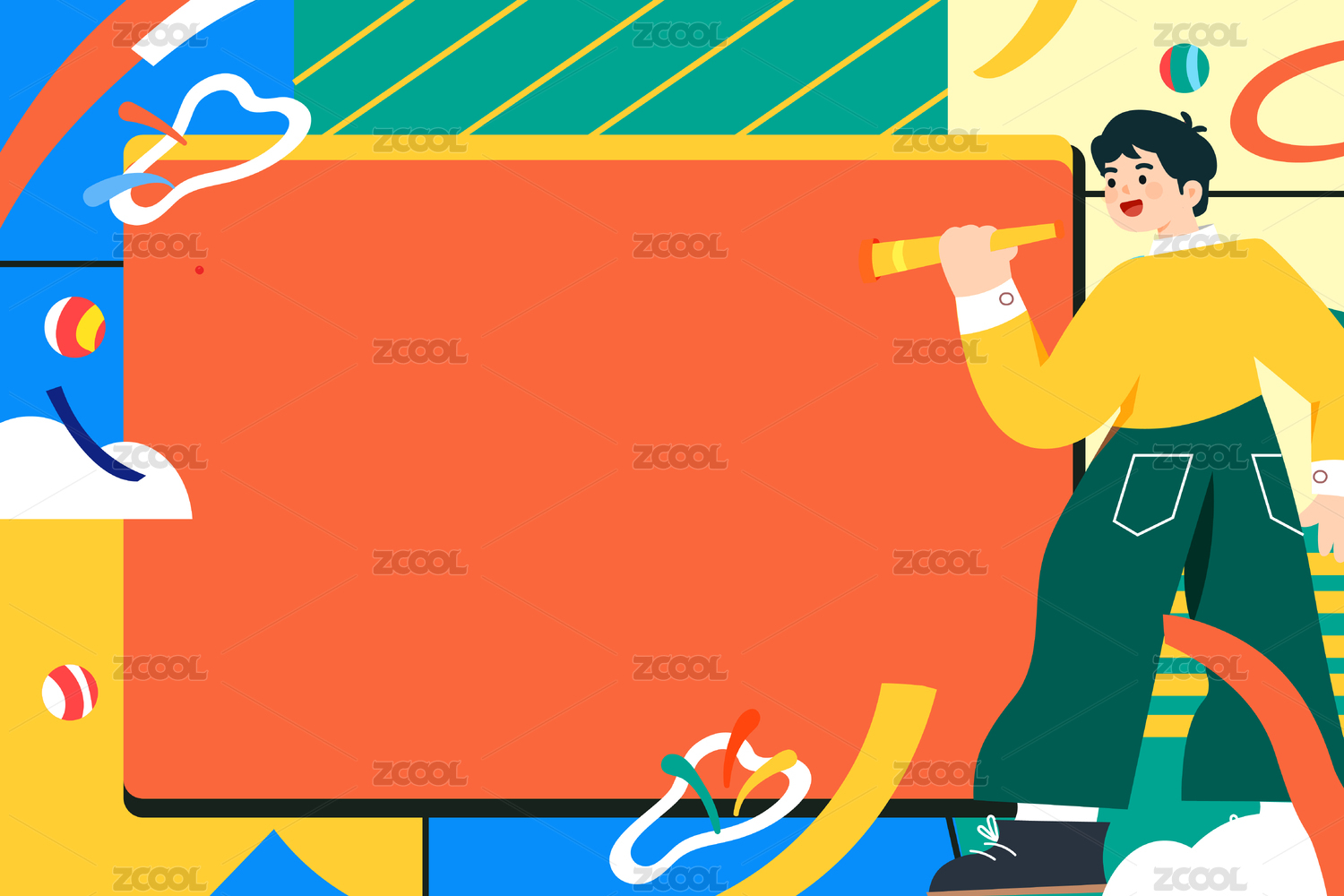 绘画蓝绿色人物矢量插画可爱鲜艳运营插画