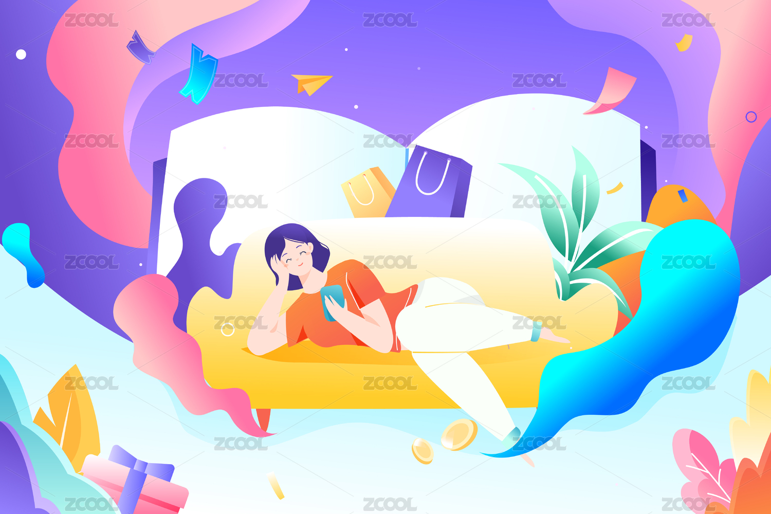 购物电商背景插画