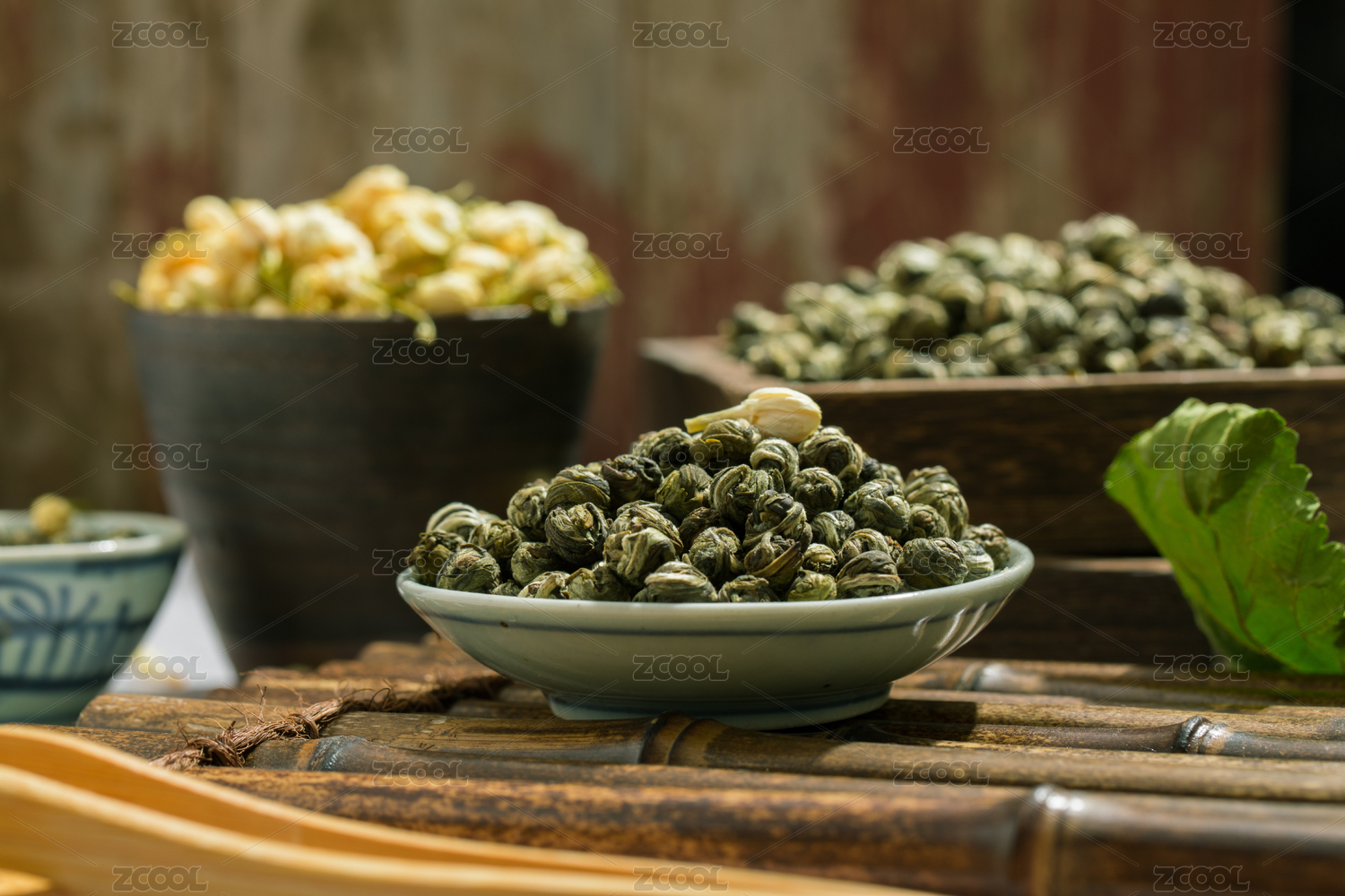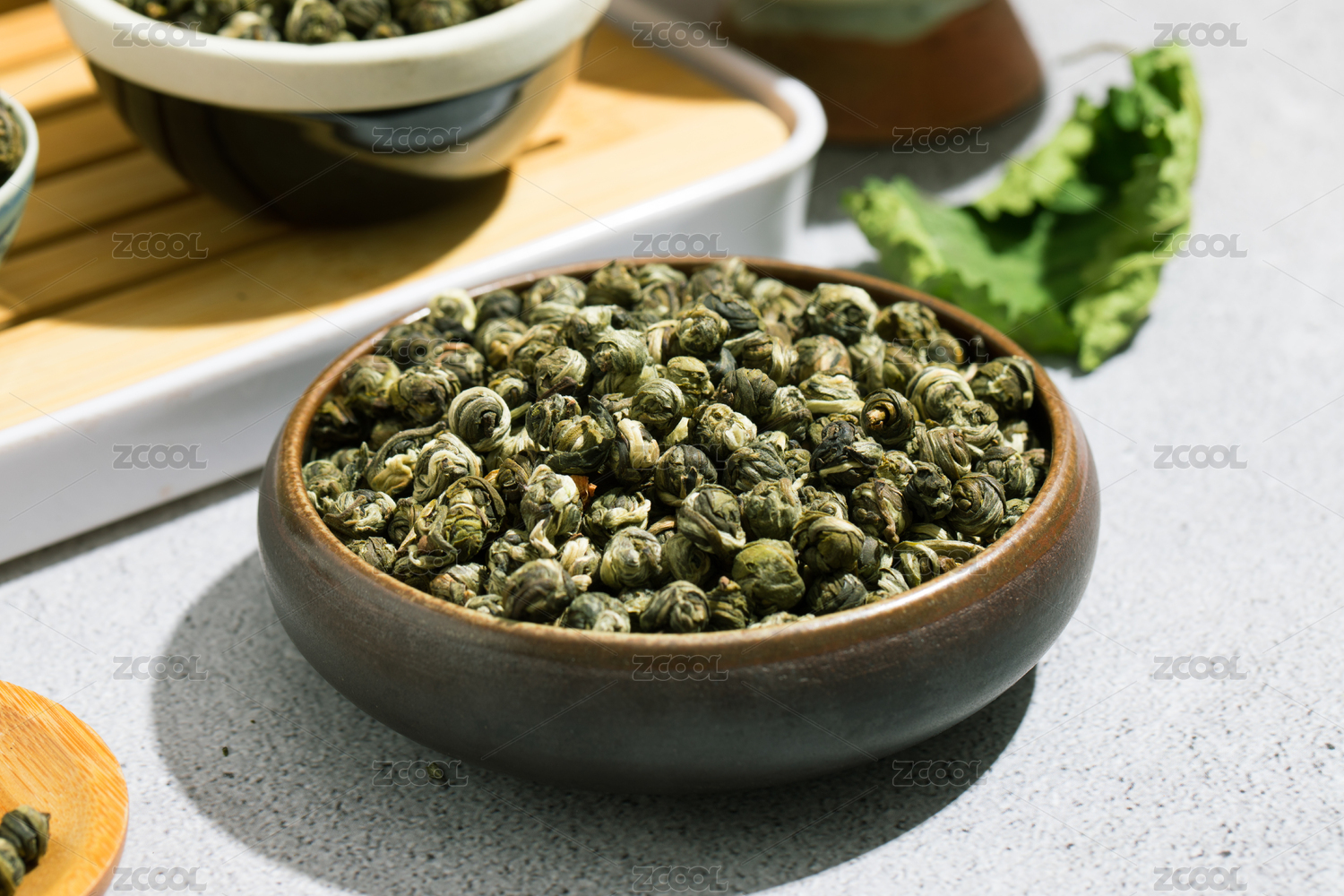 绿茶,茉莉龙珠,花茶,干茶叶,茶饮,茶叶,颗粒,中国,传统,茶具