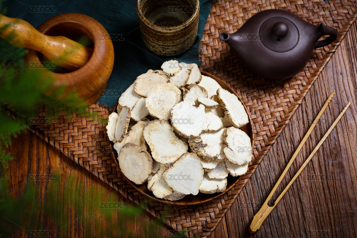 木底上放着的白芷片
