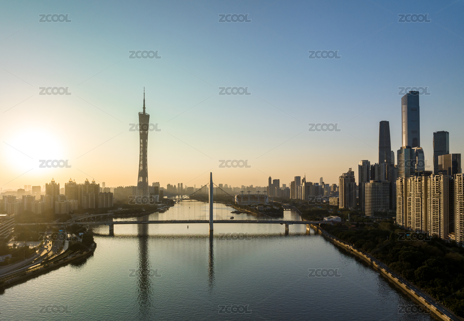 广州珠江两岸广州塔东塔西塔建筑群天际线