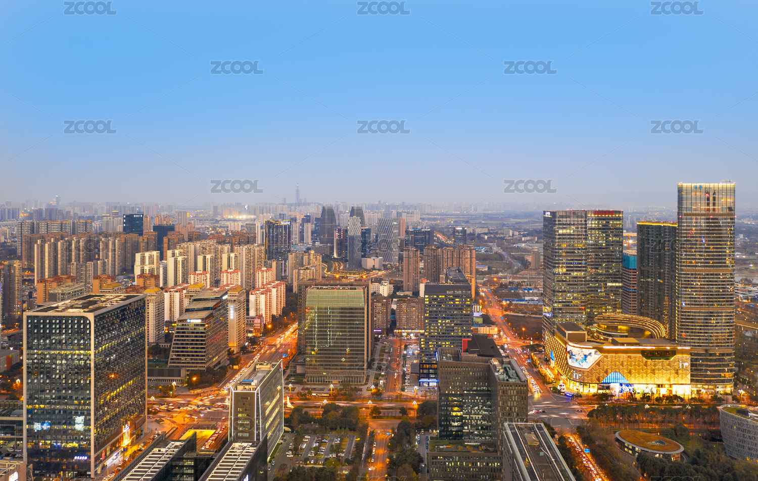 航拍郑州绿地双子塔夜景城市天际线都市地标