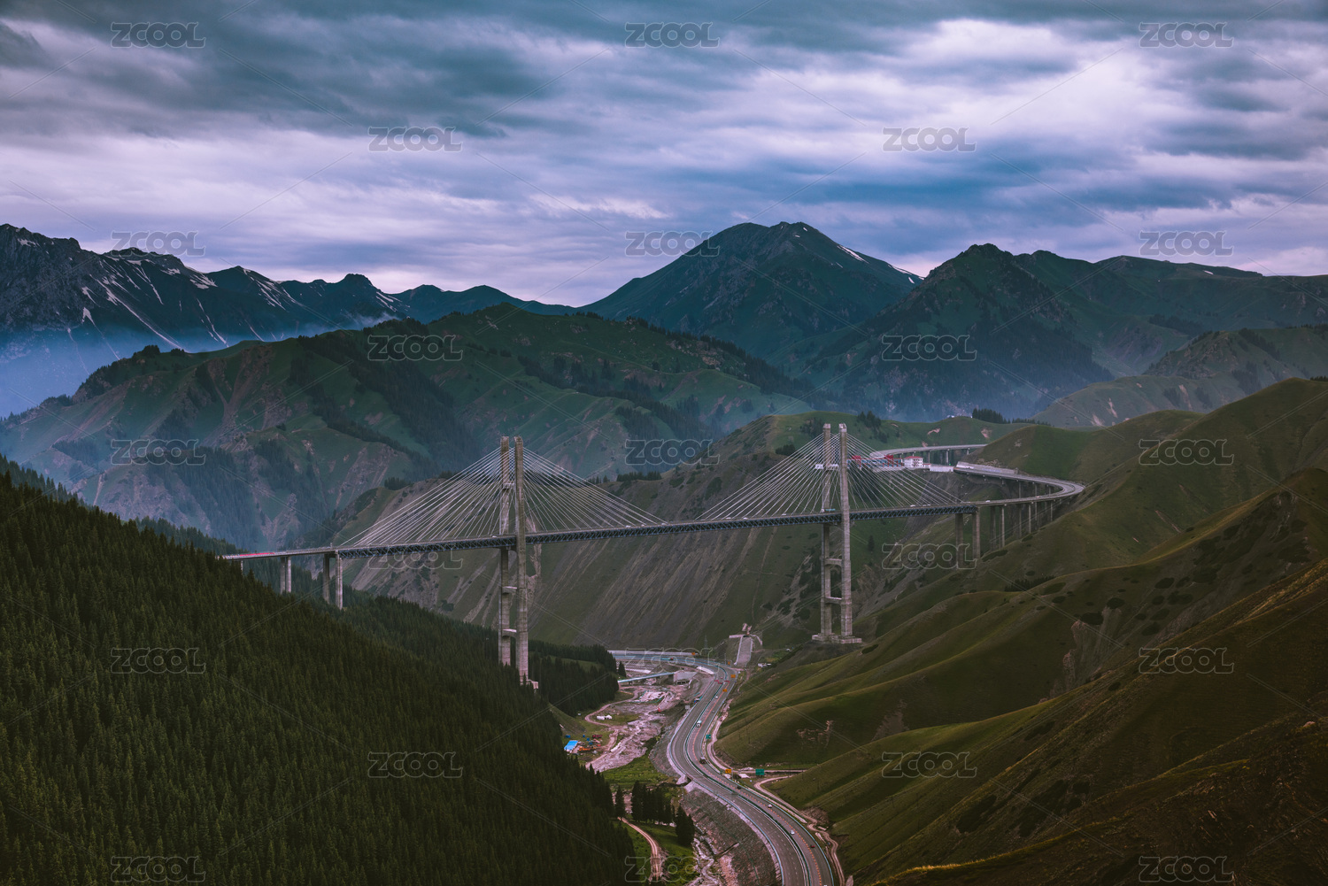 新疆,伊犁,果子沟大桥,日落,大桥,桥梁,西部,草原,高山,高速