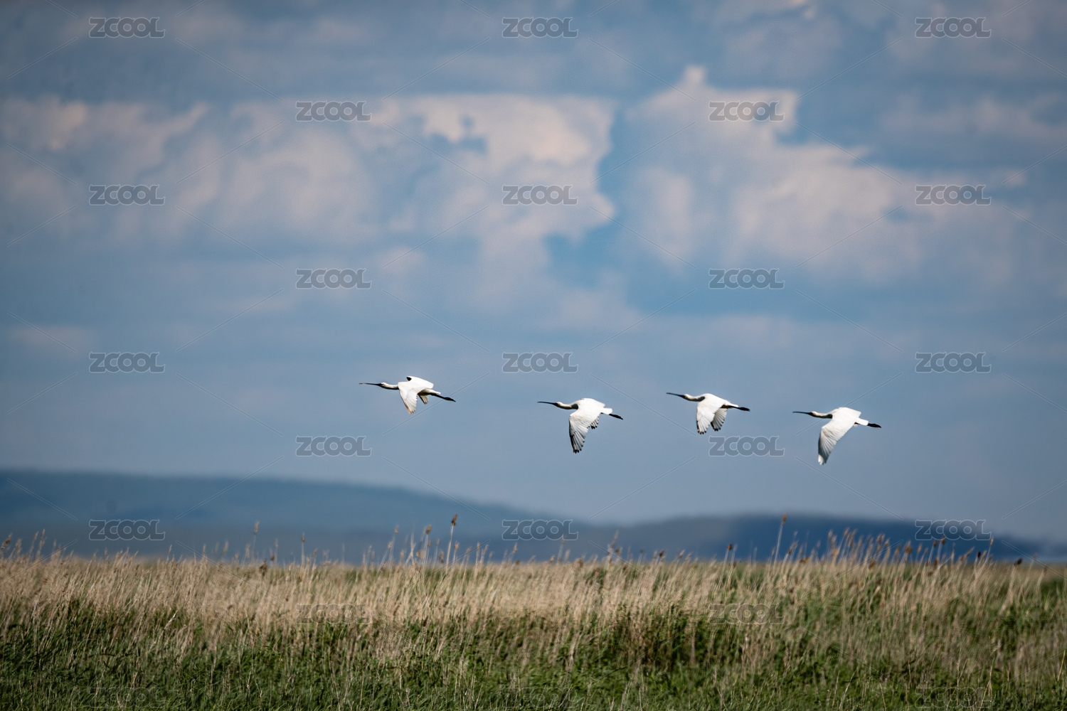 扎龙丹顶鹤自然保护区沼泽湿地里飞翔的丹顶