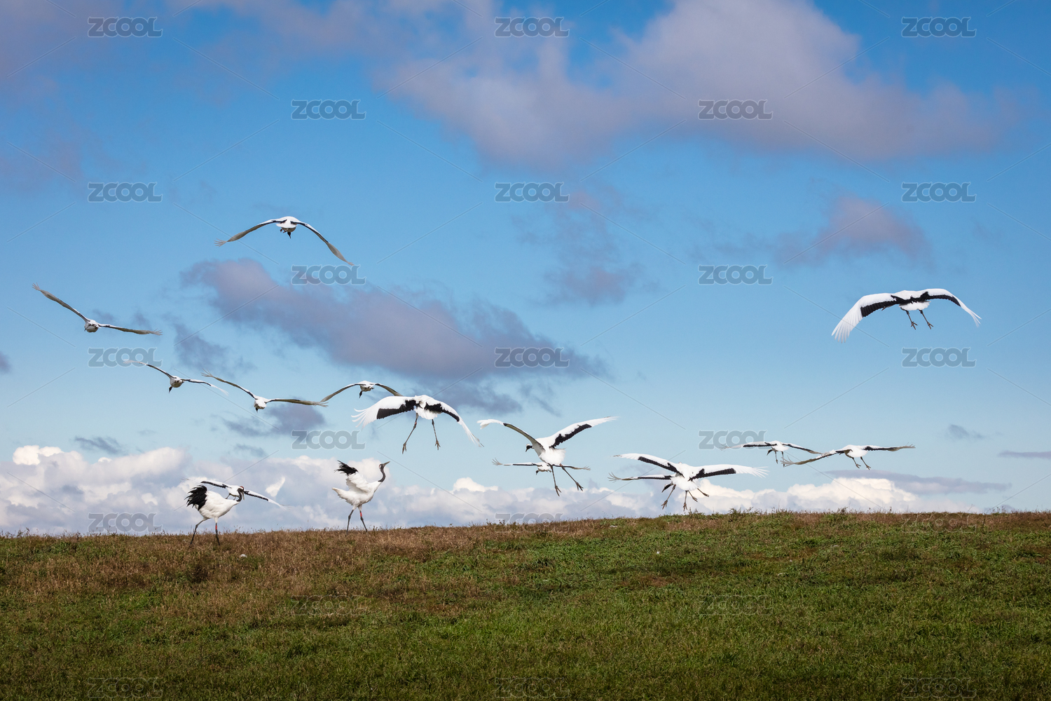 呼伦贝尔草原湿地上的飞鹤丹顶鹤