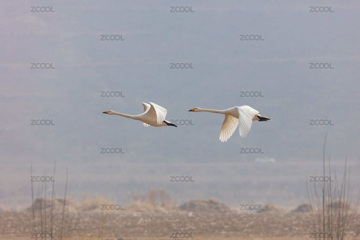山东荣成天鹅湖里过冬的西伯利亚野生大天鹅