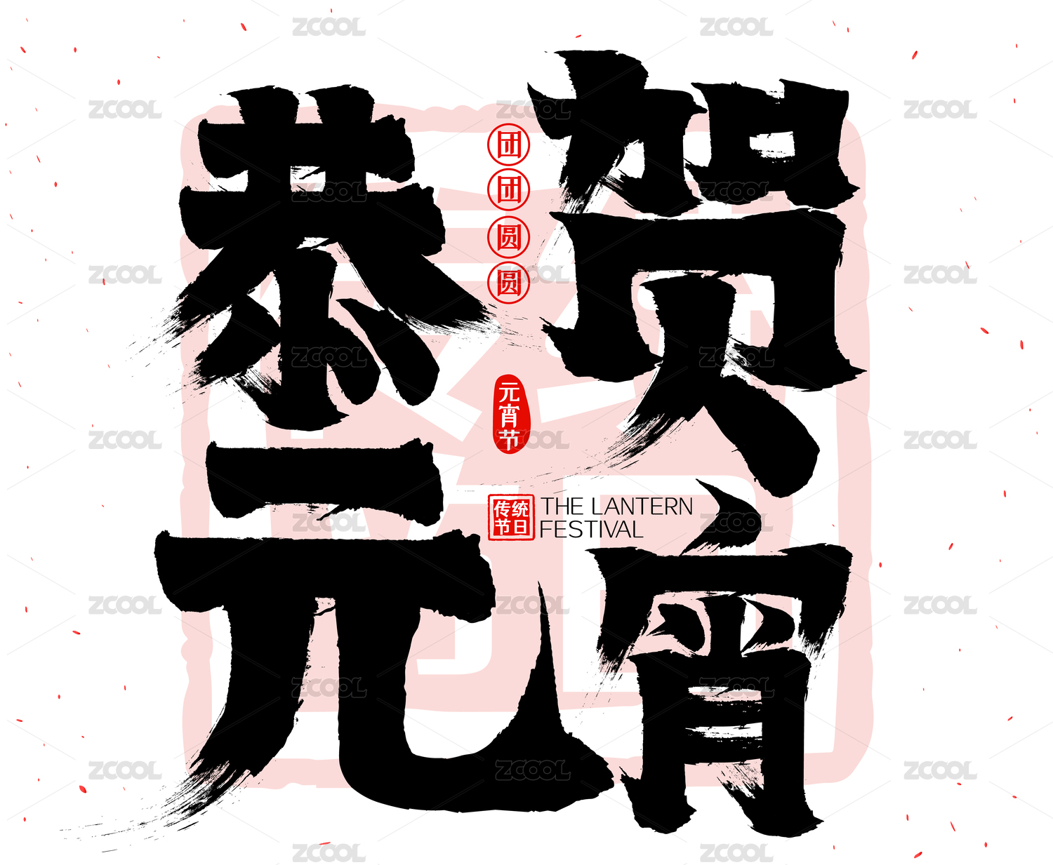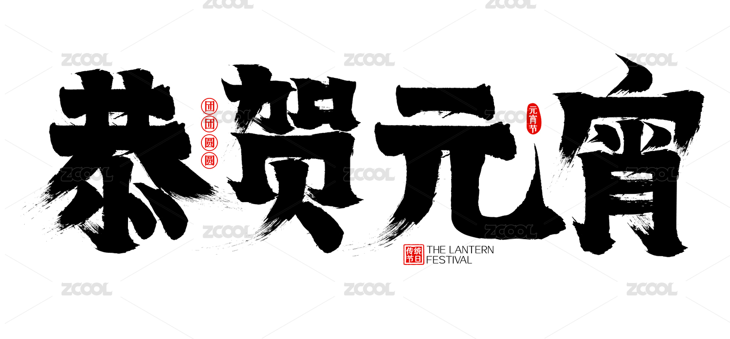 恭贺元宵简约印章矢量书法字