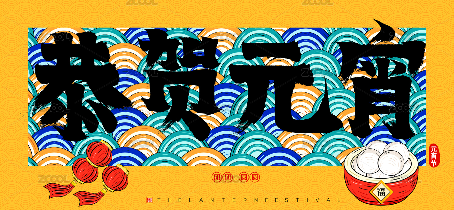 恭贺元宵国潮云纹灯笼汤圆庆祝矢量书法字